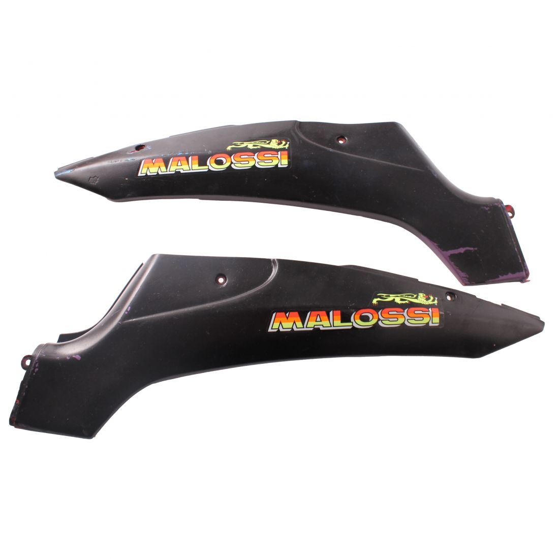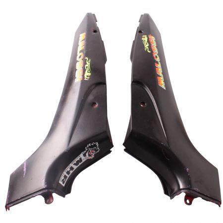 (R.23405) Vendo coppia di fianchetti posteriori usata per Malaguti Fifty di colore nero con vari adesivi applicati , il prezzo si intende per la coppia