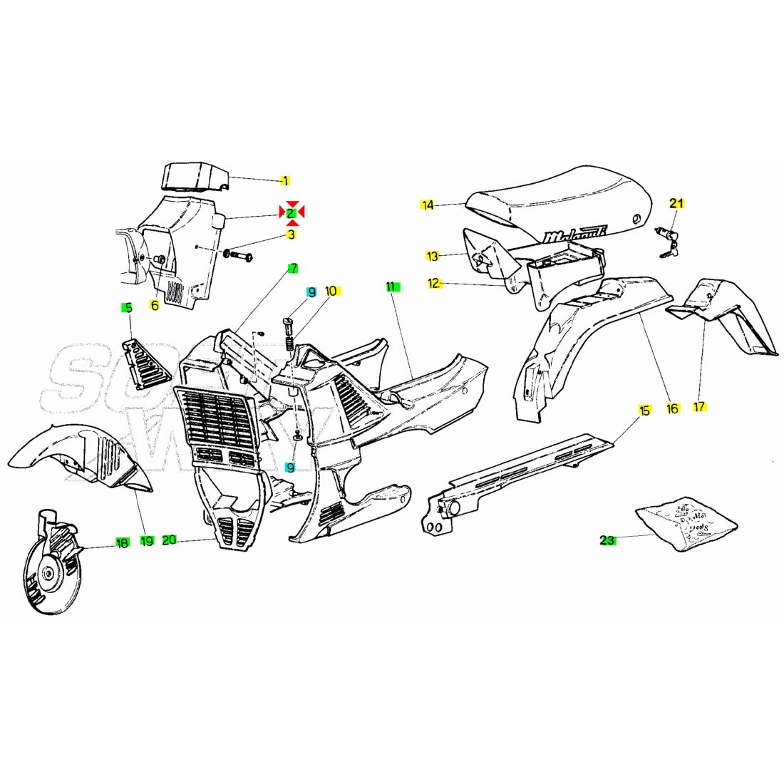 (R.23436) Vendo mascherina porta fanale anteriore nuova per Malaguti Fifty Top dal 1989 - Fifty HF dal 1989 - Fifty Full CX dal 1989 originale Malaguti con codice 05801887 di colore grigio metallizzato , per applicazioni e spaccato vedere foto