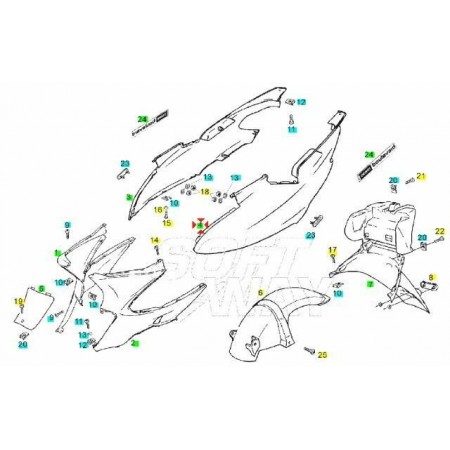 (R.9528) Vendo fianchetto posteriore sinistro nuovo per Derbi Boulevard 125 e 200 cc dal 2003 in plastica di colore Blu Caria con codice Derbi 00G00502075 , per applicazioni ed esploso vedere foto