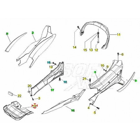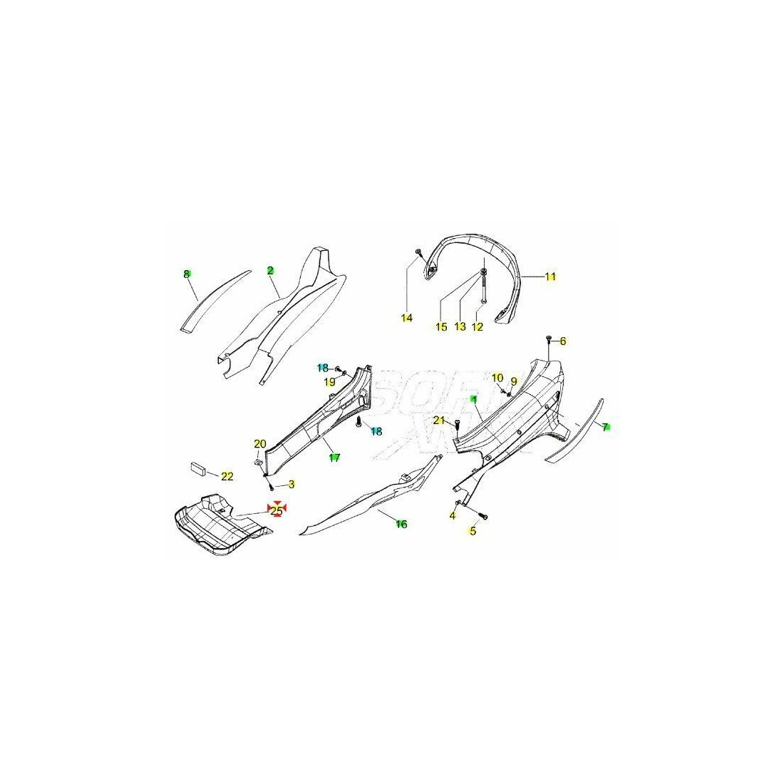 (R.7016) Vendo plastica protezione inferiore del puntone nuova per Piaggio X8 Street Euro 2 - X8 Premium Euro 2 - X8 Premium Euro 3 - X8 Euro 3 - X Evo dal 2005 con telai M49100 , M49200 , M36400 , M36401 , M36600 , M36601 , M36301 con codice Piaggio 623635 , per applicazioni ed esploso vedere foto