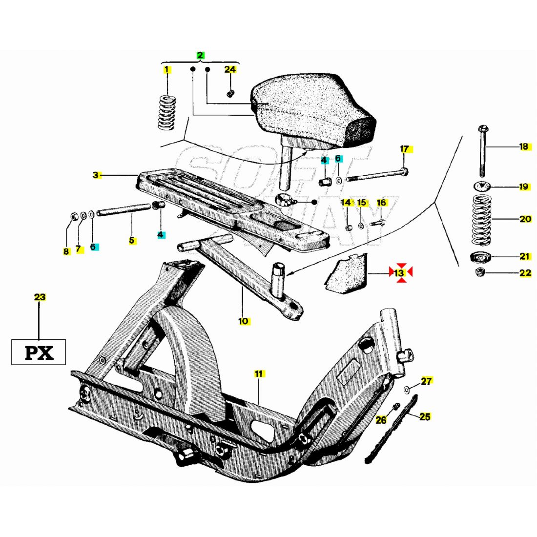 (R.14503) Vendo plastica copertura mensola oscillante nuova di colore grigio scuro liscio per Piaggio Ciao PX con codice Piaggio 247847 , per applicazioni e spaccato vedere foto , il prezzo si intende per il singolo pezzo