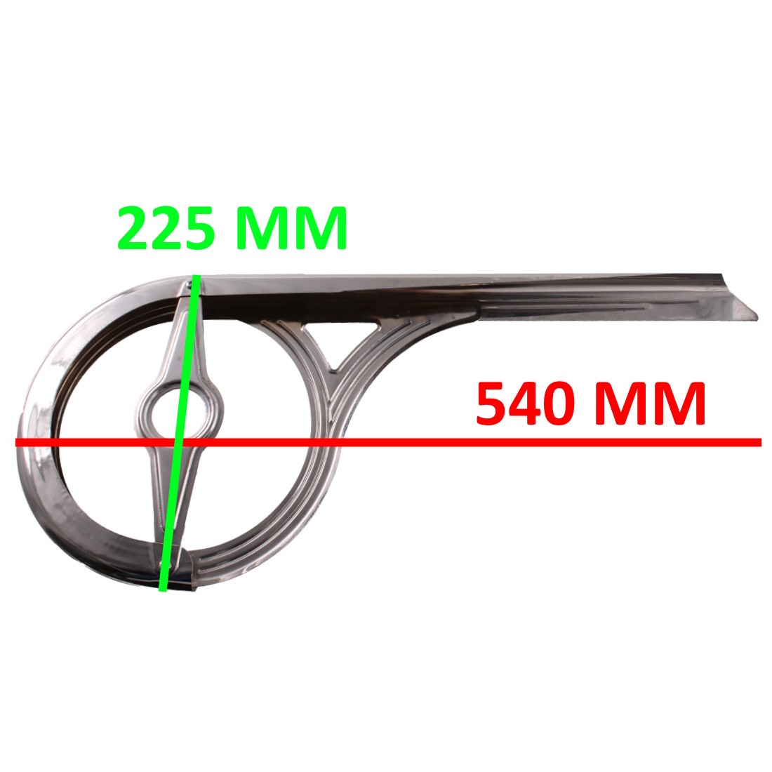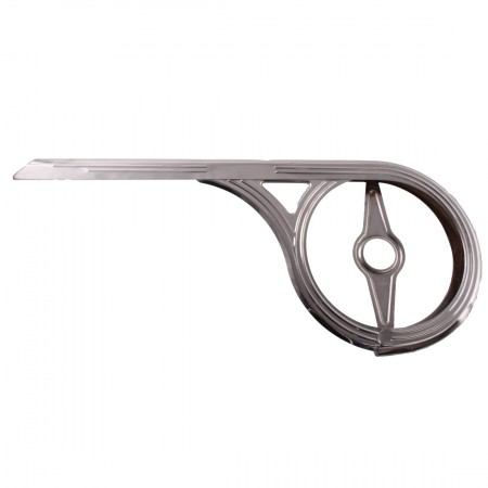 (R.21071) Vendo carter copri catena a pistola nuovo in ferro cromato per cicli vari vintage con lunghezza 540 mm e altezza 225 mm , per misure vedere foto