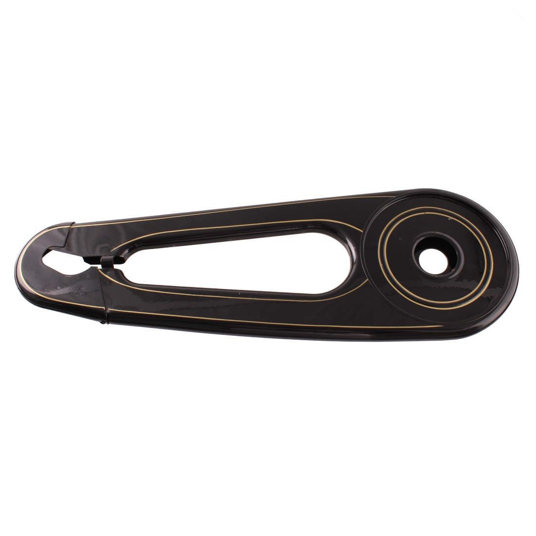 (R.21273) Vendo carter copri catena nuovo per cicli Bianchi erre vintage da donna con ruote da 26 pollici per forcellino piccolo di colore nero con fregi color oro e con leggeri , senza scritte con segni di magazzinaggio