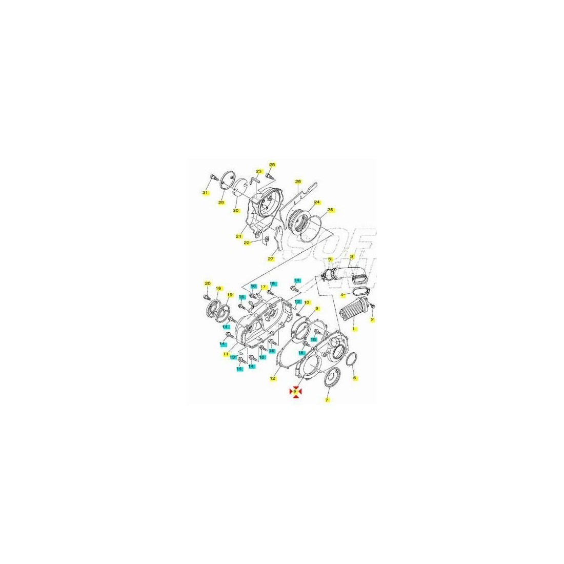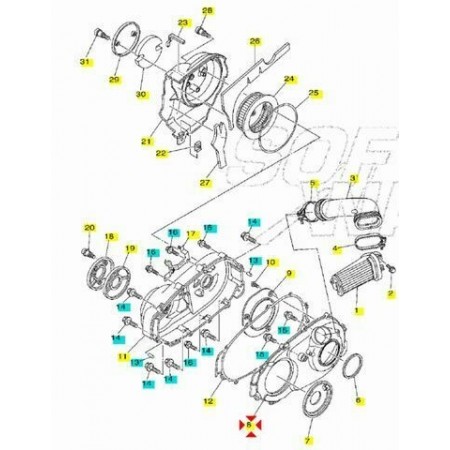 (R.8266) Vendo copertura usata carter variatore completo di guarnizione per Yamaha XP T-Max , SV , Black Max , White Max 500 cc , telai SJ011 , 4 , 5 , 6 , SJ031 , 32 , 34 , SJ051 , 52 , 61 , 62 , 64 dal 2001 con codice coperchio 5GJ154310000 e codice guarnizione 5GJ154610100 , per applicazioni ed esploso vedere foto