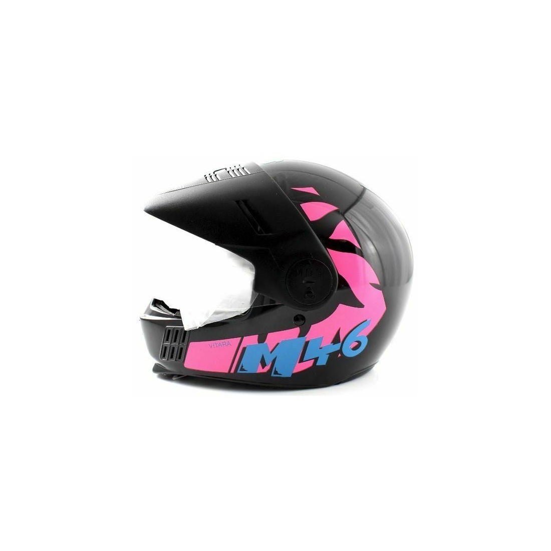 (R.7033) Vendo casco nuovo vintage marca Mds Helmets modello Vitara M46 originale epoca omologato con visiera trasparente di colore nero - rosa - azzurro , unica taglia disponibile  56 S