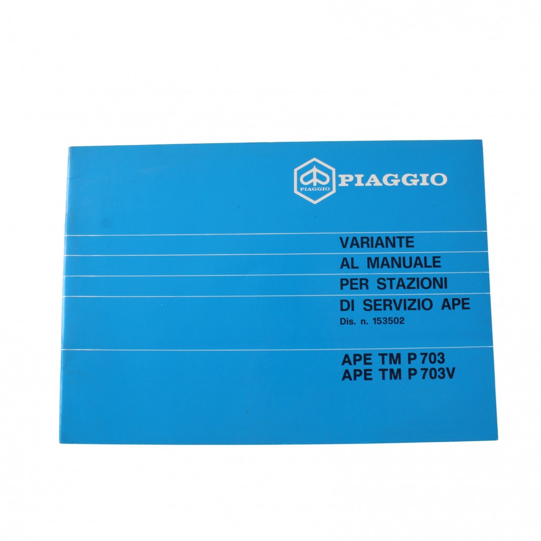 (R.15818) Vendo variante al manuale per stazione di servizio nuovo per Piaggio Ape Tm P703 - P703V con codice Piaggio 153502 , il prezzo si intende al singolo pezzo
