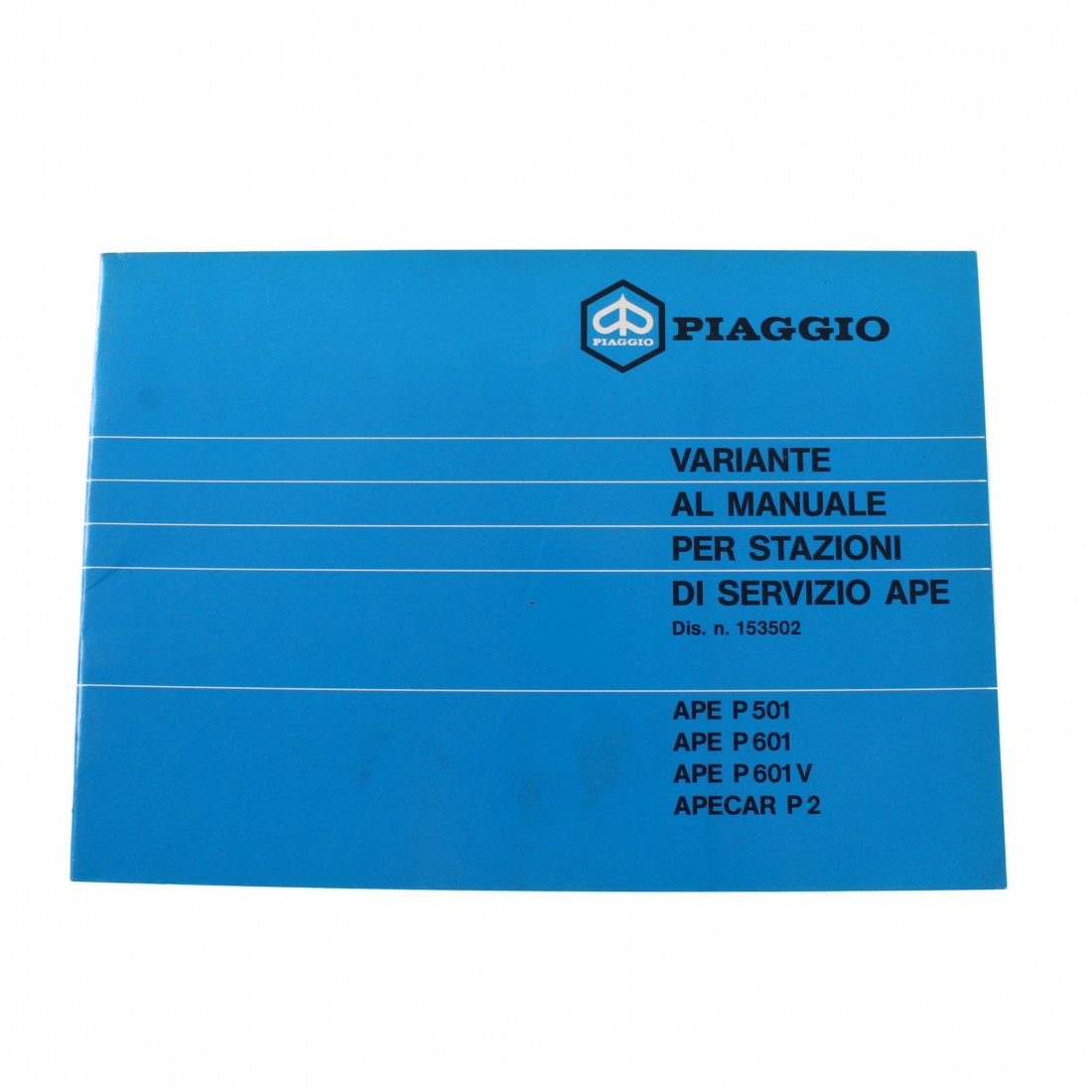 (R.15824) Vendo variante al manuale per stazioni di servizio nuovo per Piaggio Ape P501 - P601 - P601V - Ape Car P2 con codice Piaggio 153502 , il prezzo si intende al singolo pezzo