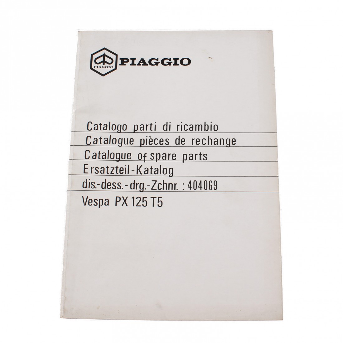 (R.15854) Vendo catalogo parti di ricambio nuovo per Piaggio Vespa PX 125 cc T5 con codice Piaggio 404069