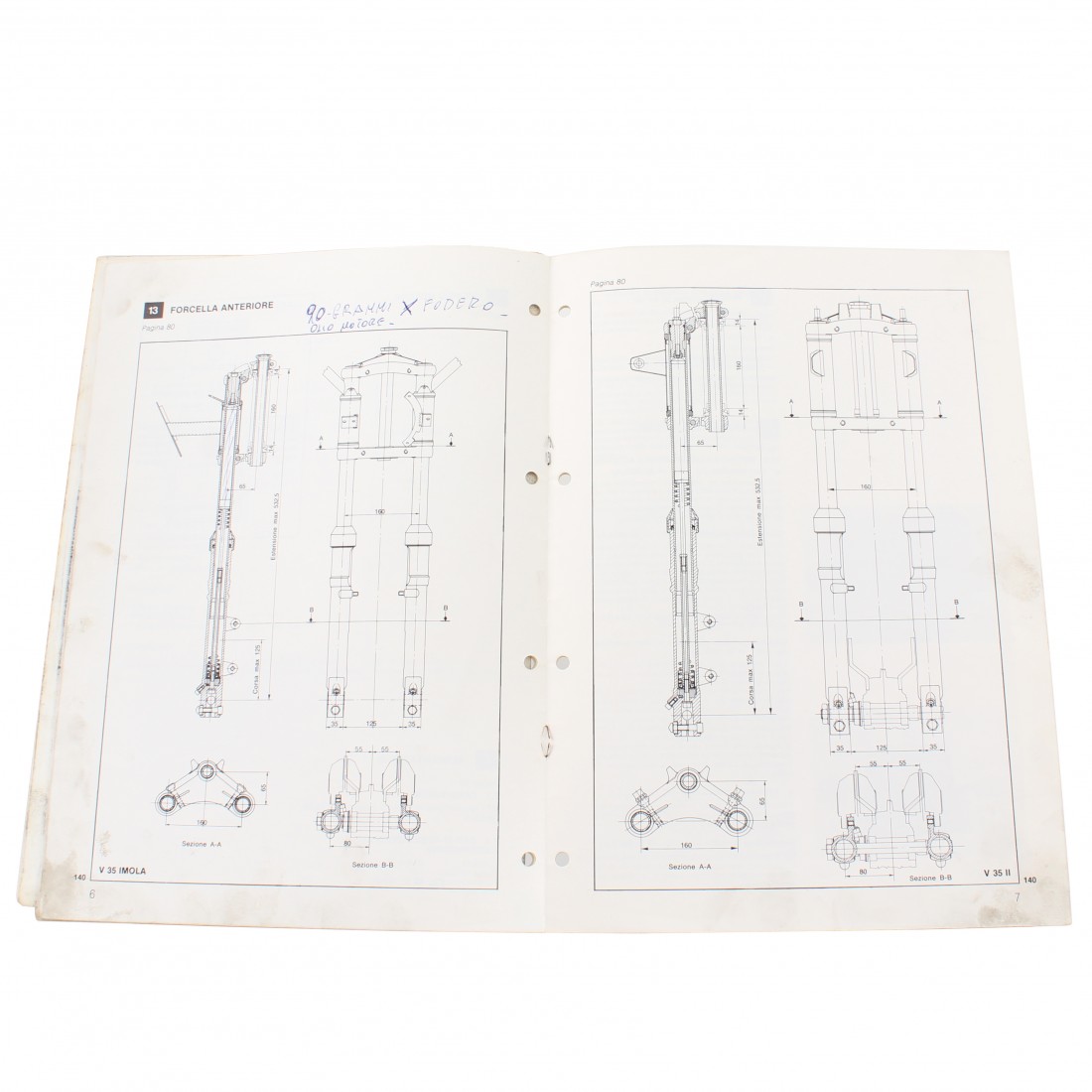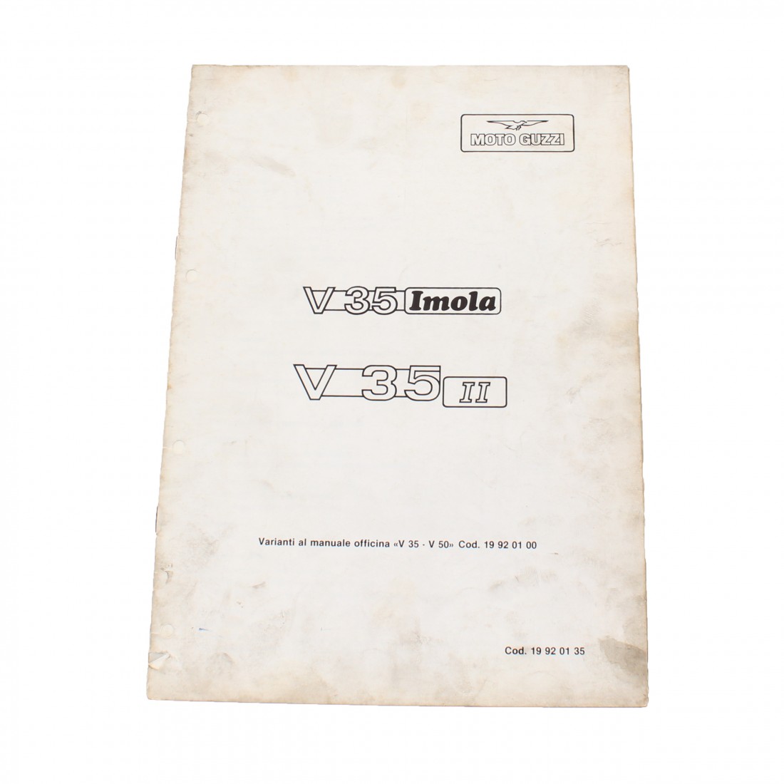 (R.15955) Vendo variante al manuale stazioni di servizio usato per Moto Guzzi V 35 Imola e V 35 II del 1980 con codice 19920135 o 19 92 01 35 in italiano