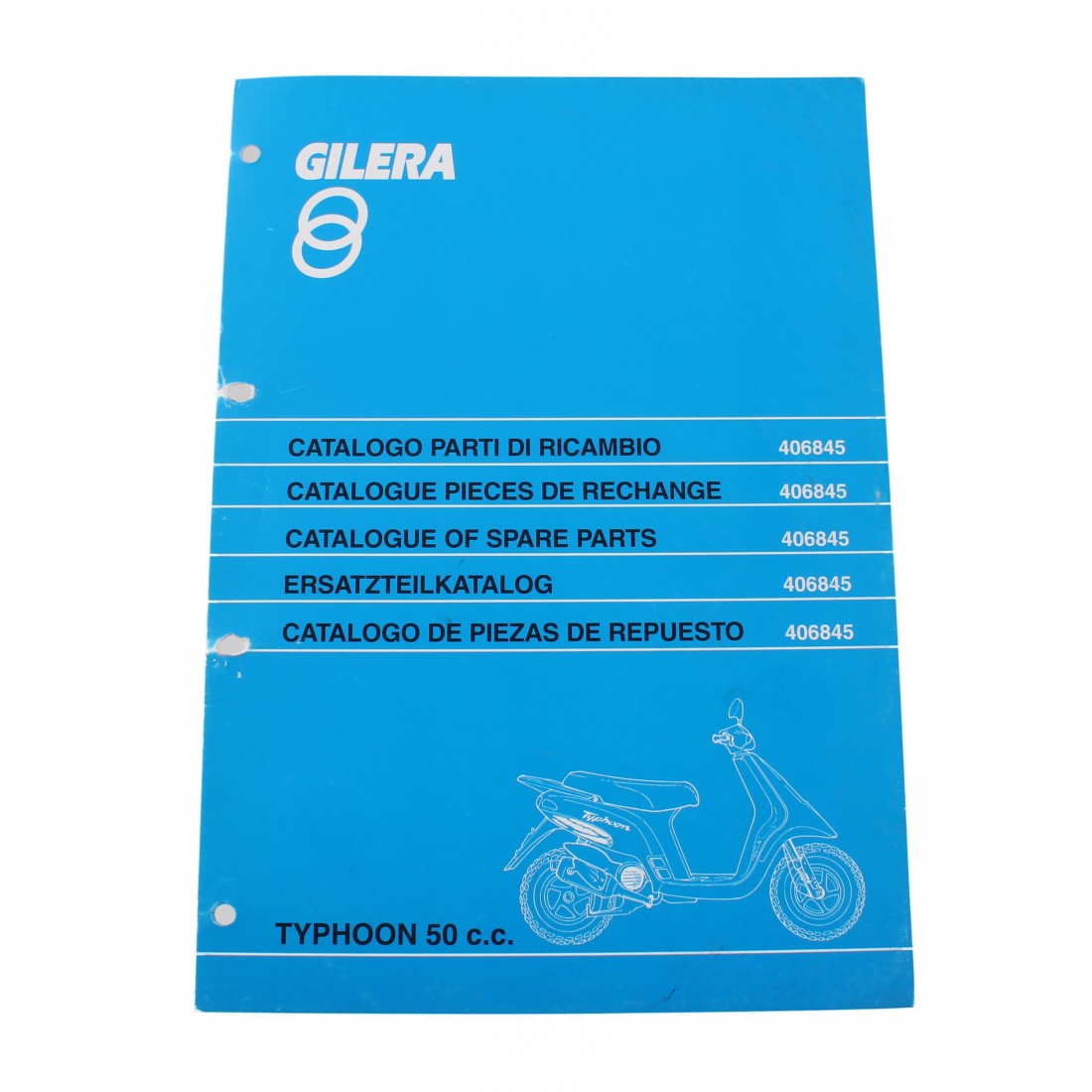 (R.16075) Vendo catalogo parti di ricambio  in italiano nuovo per Gilera Typhoon 50 cc con codice 406845