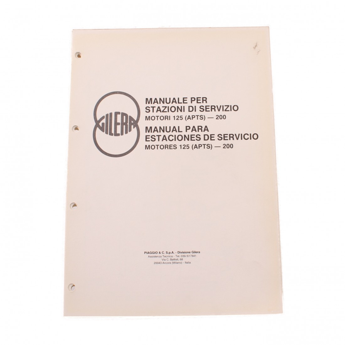 (R.16886) Vendo manuale stazioni di sevizio nuovo fondo di magazzino per motori Gilera APTS 125 e 200 cc in italiano e spagnolo con leggeri segni di magazzinaggio esterni sulla copertina e con interno sano