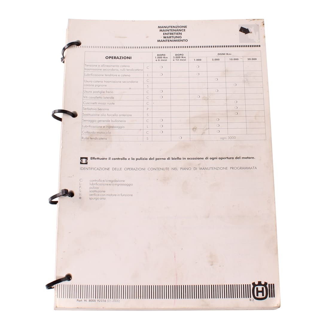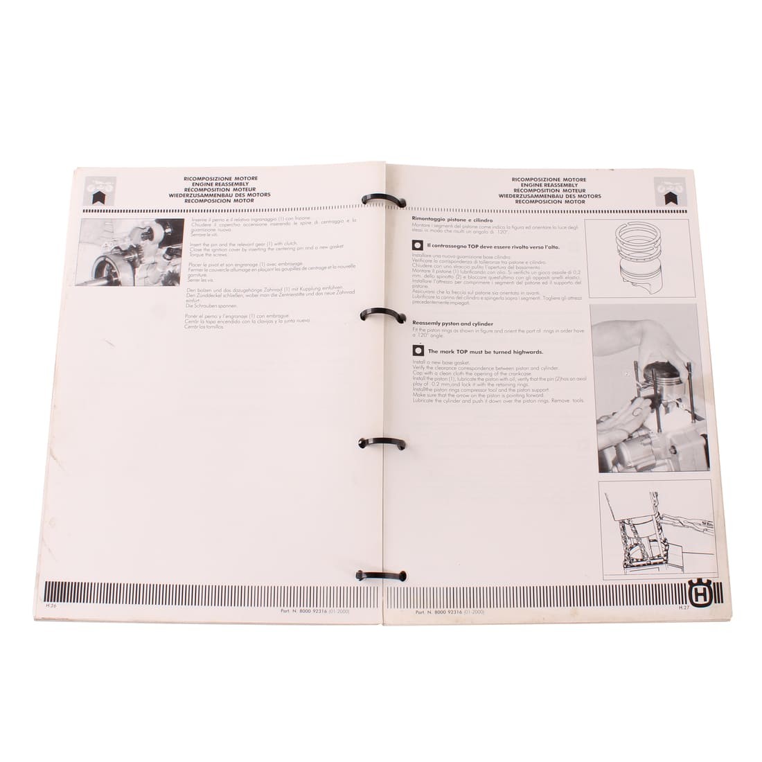 (R.19239) Vendo manuale officina usato per Husqvarna TE 410 E - TE 610 E - TE 610 E LT - SM 610 S con codice 800092316 o 92316 edizione del 01/2000 in italiano - inglese - francese - tedesco - spagnolo , manuale incompleto mancano la copertina e le pagine fino alla B.3