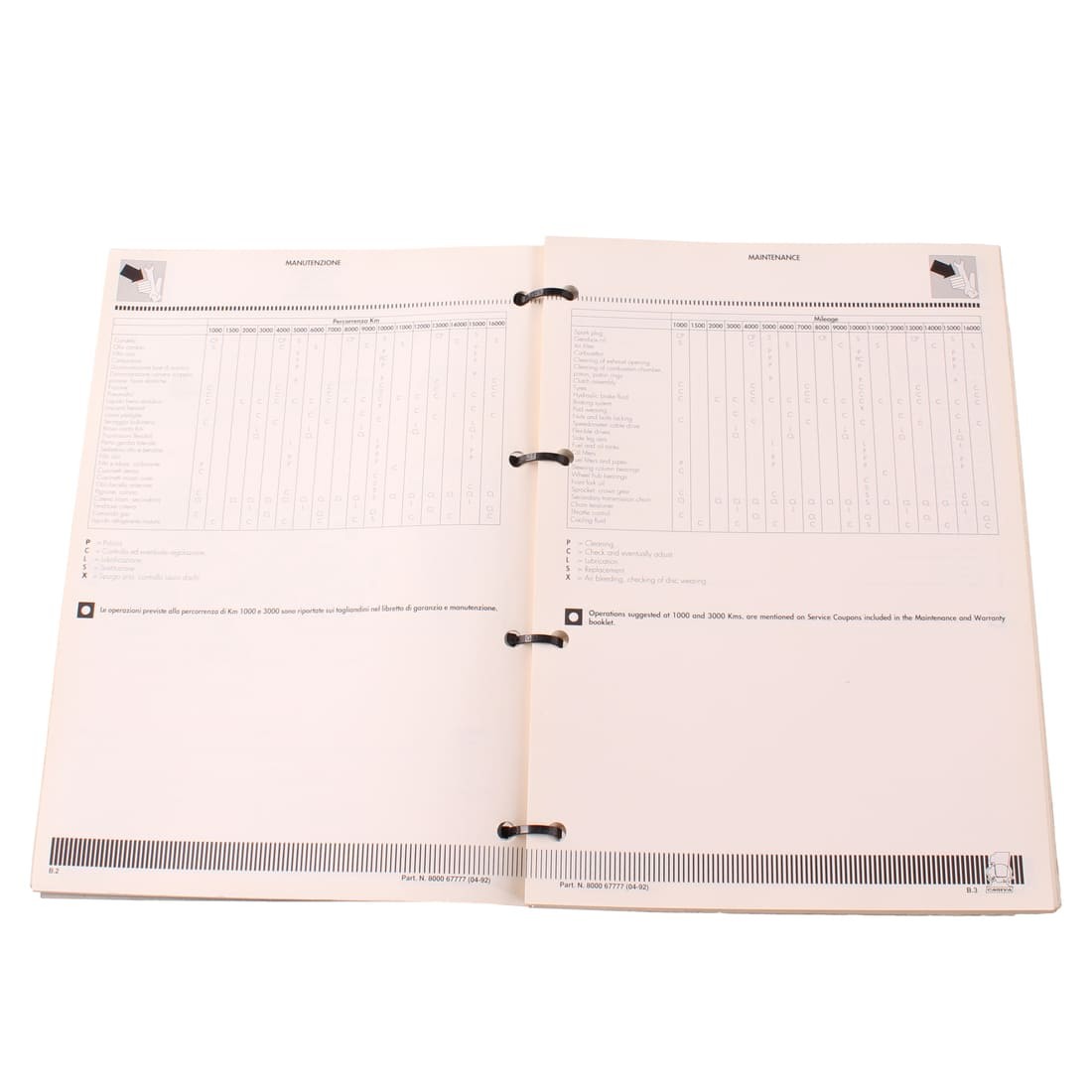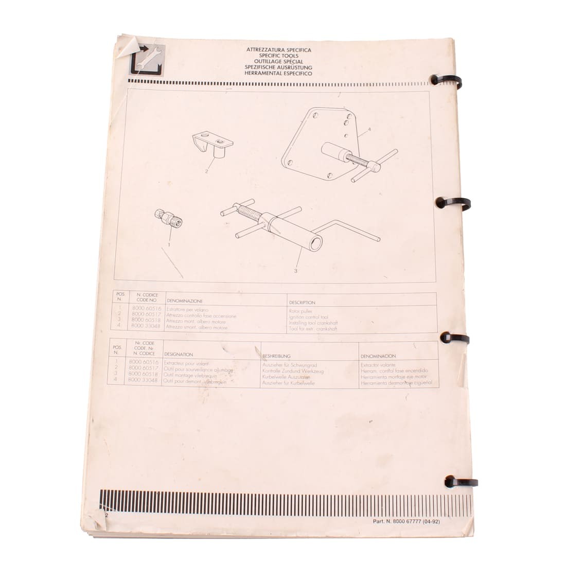 (R.19249) Vendo manuale stazioni di servizio nuovo fondo di magazzino per Cagiva Prima 50 e 75 cc con codice 800067777 o 67777 in italiano - inglese - francese - tedesco - spagnolo con evidenti segni di magazzinaggio , catalogo incompleto disponibili pagine fino alla W.2