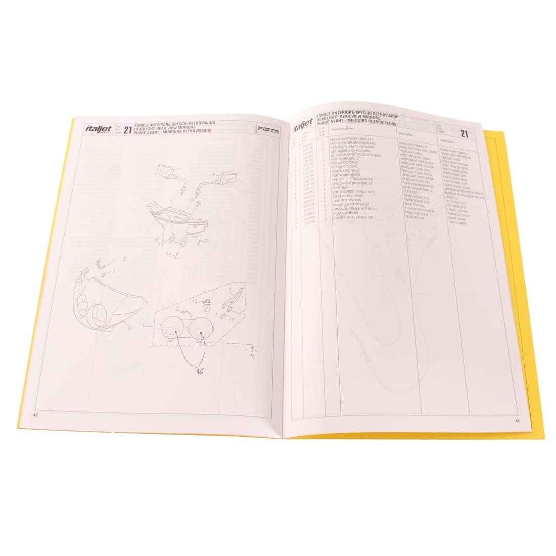 (R.19316) Vendo prontuario parti di ricambio con esplosi nuovo fondo di magazzino per Italjet Pista 2 in italiano - inglese - francese con leggeri segni di magazzinaggio