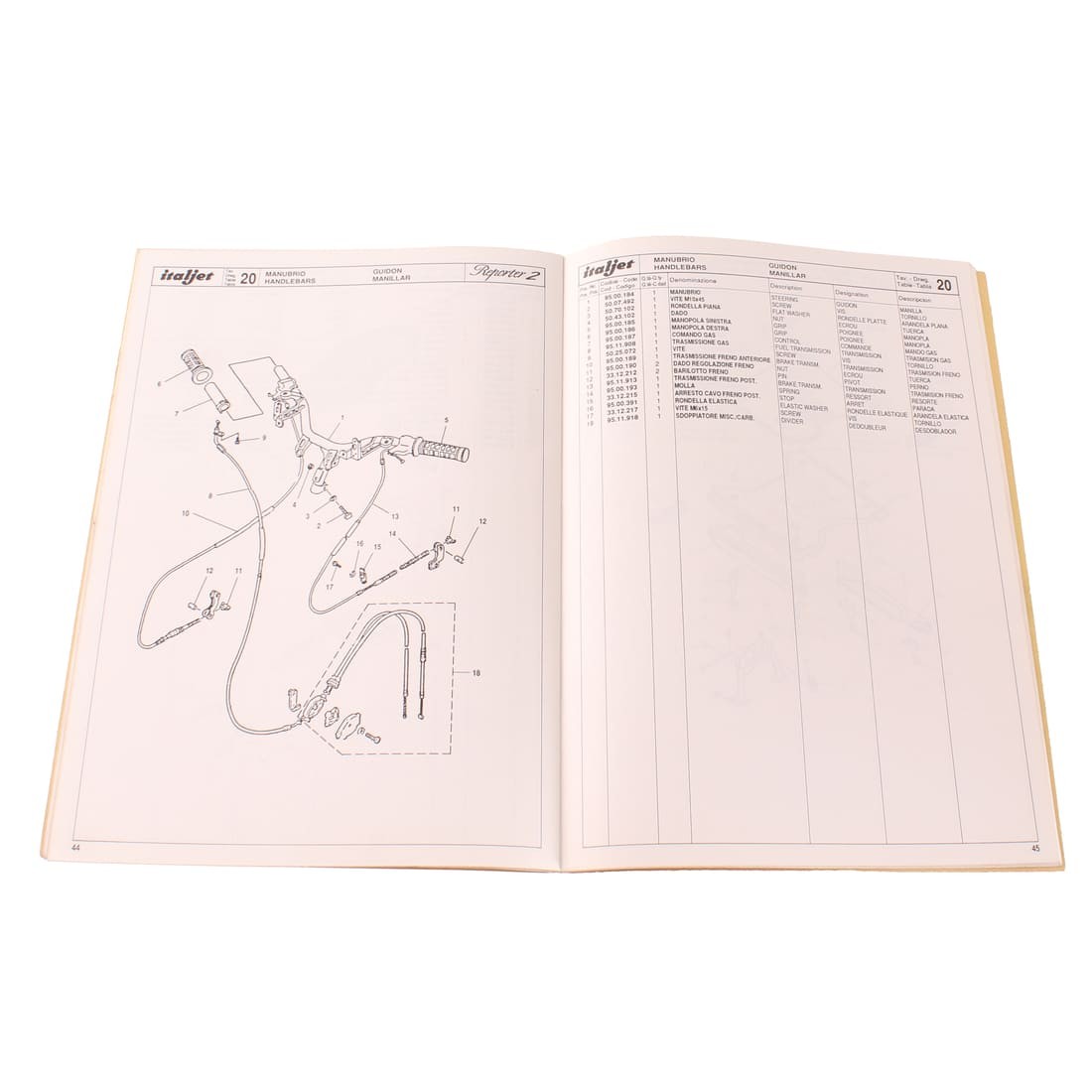 (R.19318) Vendo prontuario parti di ricambio con esplosi nuovo fondo di magazzino per Italjet Reporter 2 in italiano - inglese - francese - spagnolo con leggeri segni di magazzinaggio
