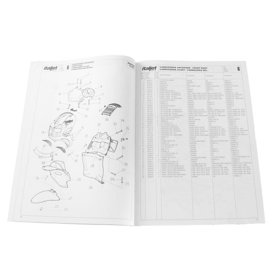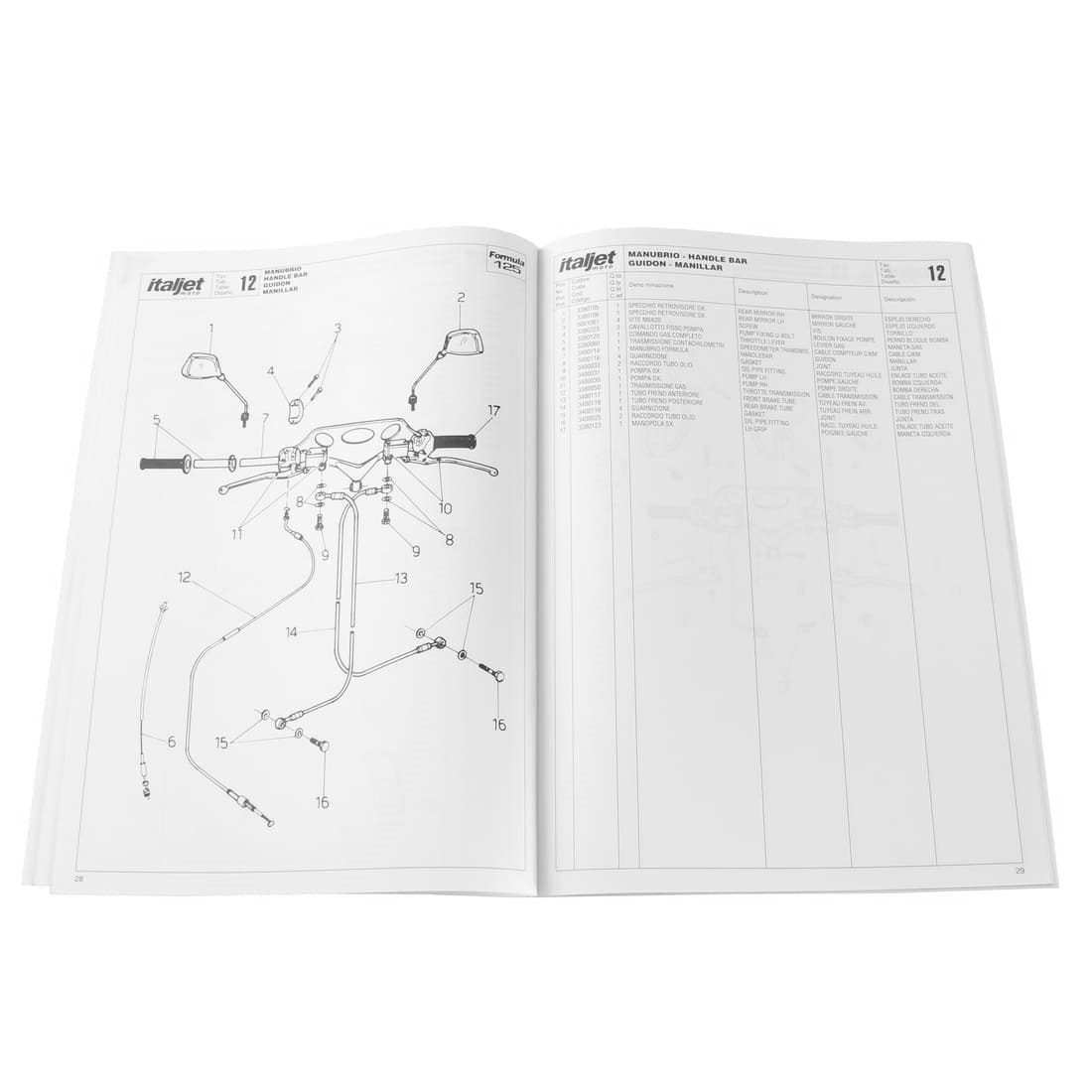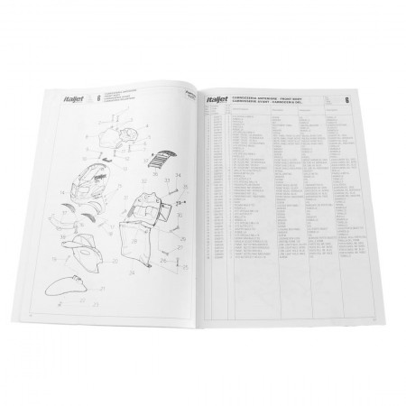 (R.19324) Vendo prontuario parti di ricambio scansionato in bianco e nero in formato PDF del catalogo con esplosi per Italjet Formula 125 in italiano - inglese - francese - spagnolo , disponibile solo scansione no catalogo originale
