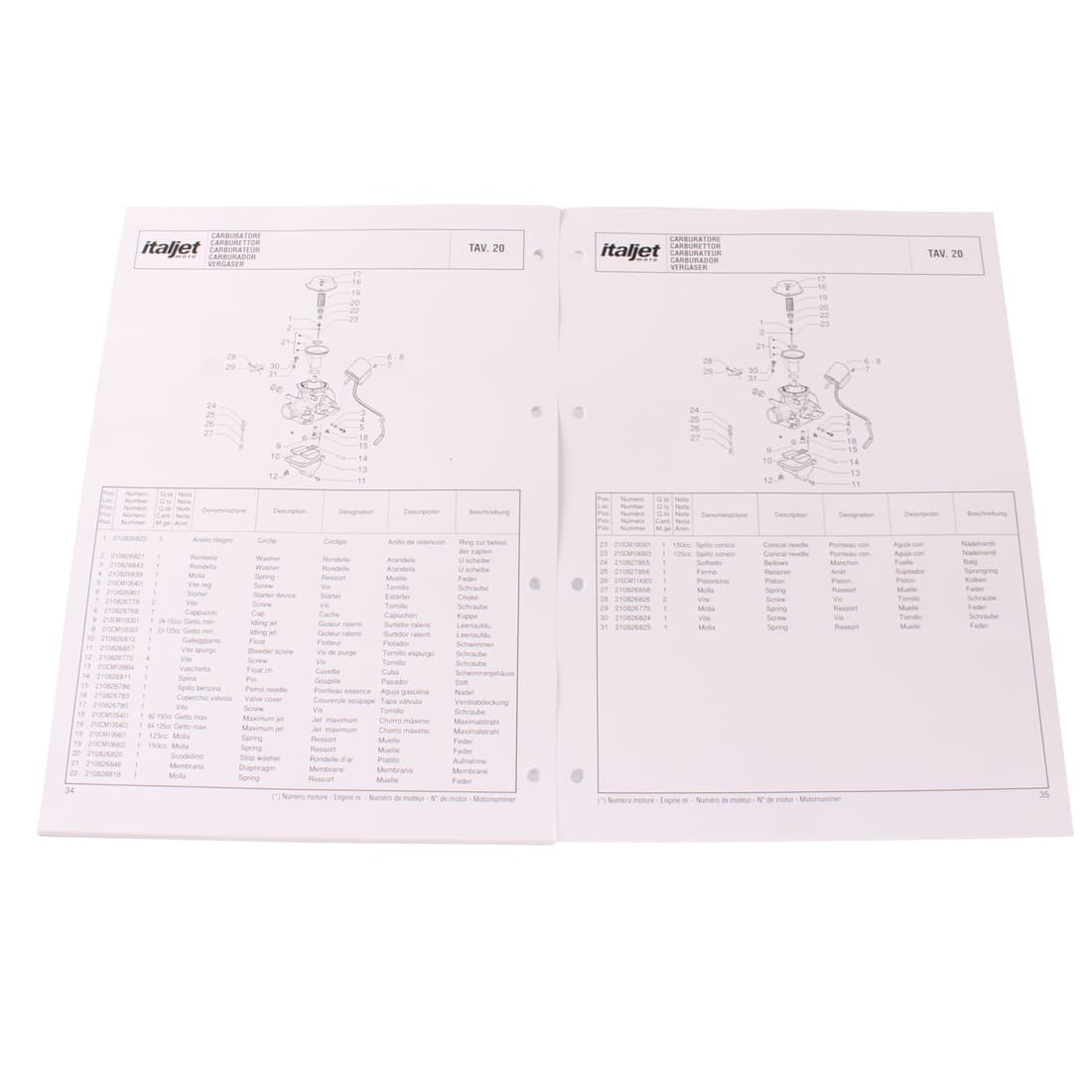 (R.19326) Vendo prontuario parti di ricambio con esplosi nuovo fondo di magazzino per Italjet Jet-Set 125 e 150 cc quattro tempi in italiano - inglese - francese - spagnolo - tedesco con leggeri segni di magazzinaggio
