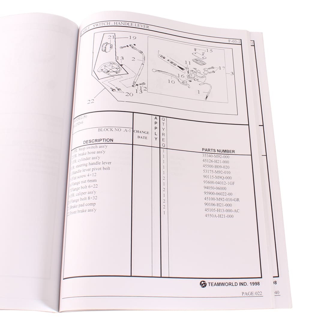 (R.19337) Vendo prontuario parti di ricambio con esplosi nuovo fondo di magazzino per Sym Attila 125 H125D in inglese solo copertina in italiano con leggeri segni di magazzinaggio