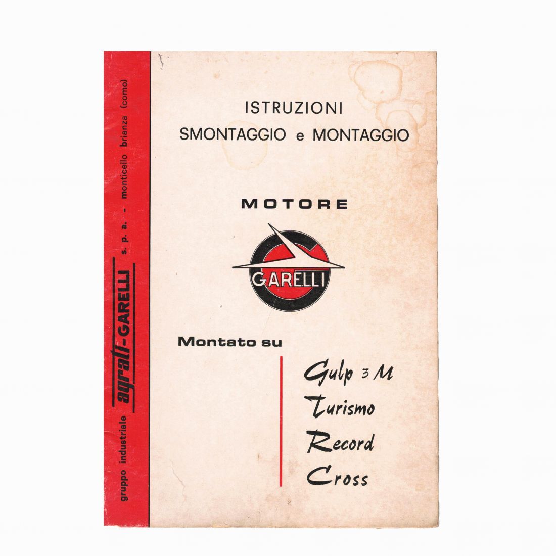 (R. 25019) Vendo scansione in formato PDF a colori del manuale officina con istruzioni di montaggio e smontaggio motore Garelli in italiano per Moto Garelli Gulp 3 M - Turismo - Record - Cross, disponibile solo scansione , foto del catalogo originale solo a scopo illustrativo