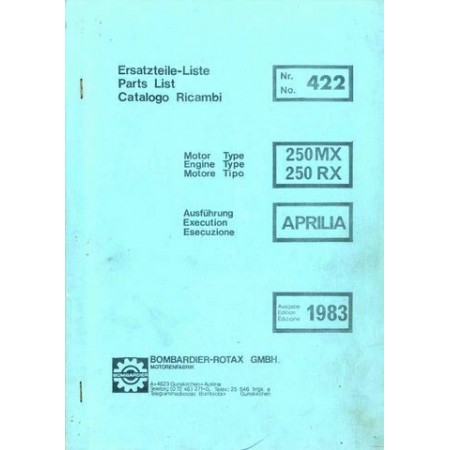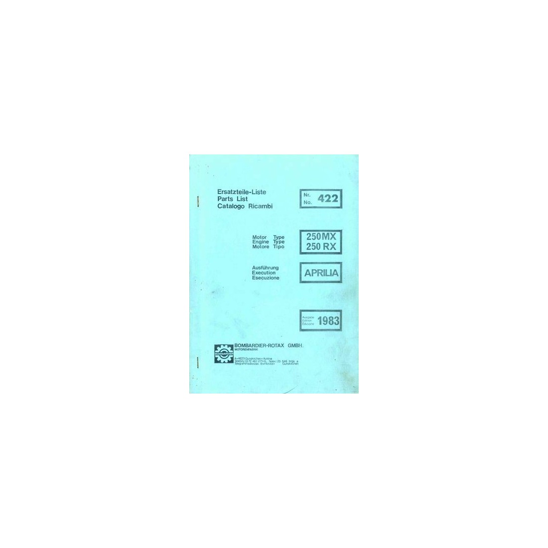 (R.9982) Vendo prontuario originale usato con esploso parti di ricambio solo del motore Rotax GMBH per Aprilia MX e RX 250 cc edizione del 1983 con codice 422