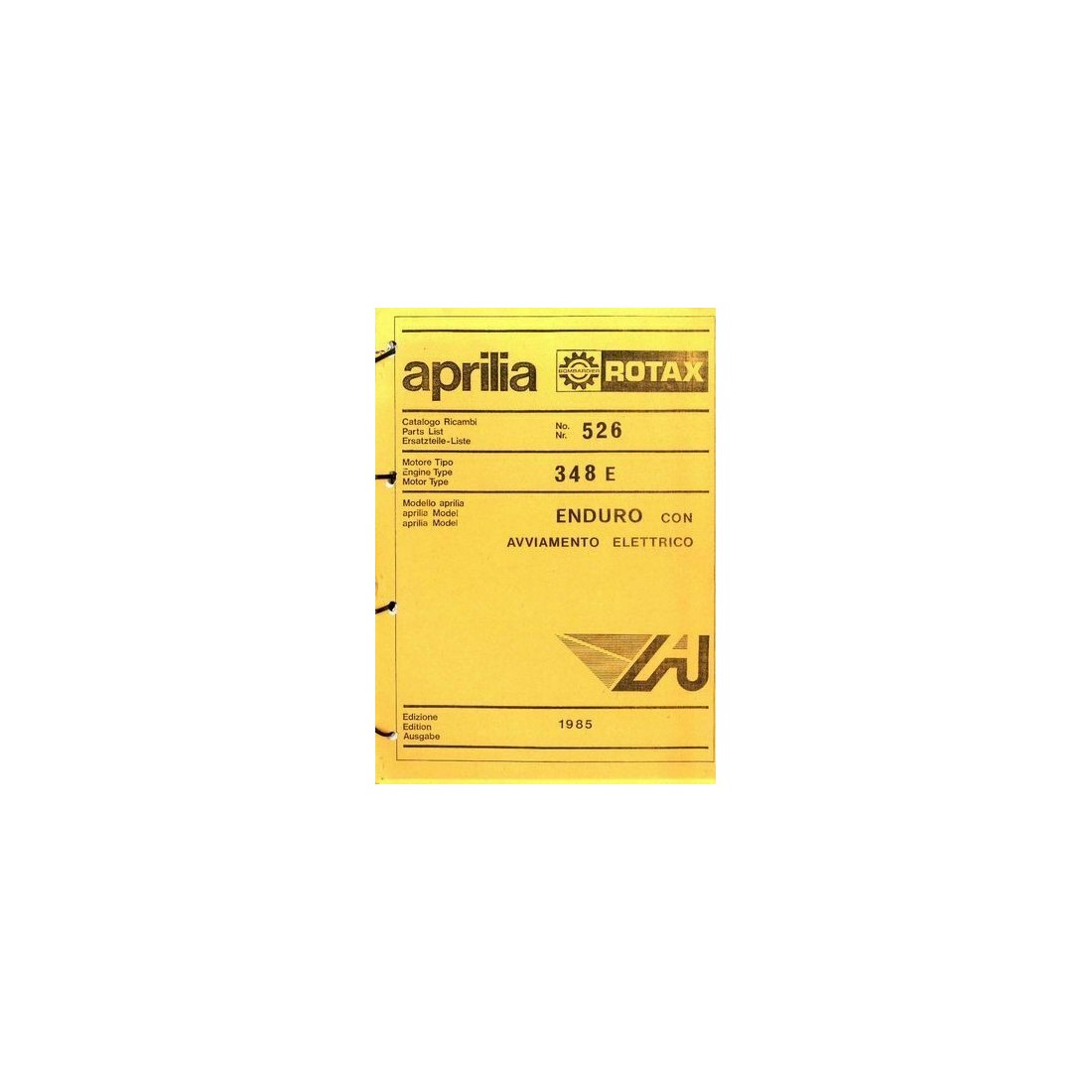 (R.9973) Vendo prontuario originale usato con esploso parti di ricambio per motore Aprilia 348 E Rotax modello Enduro con avviamento elettrico con codice 526 , edizione del 1985