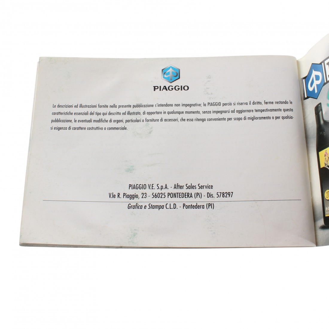 (R.13568) Vendo libretto uso e manutenzione nuovo per Piaggio Skipper 125 e 150 cc originale non riproduzione in italiano