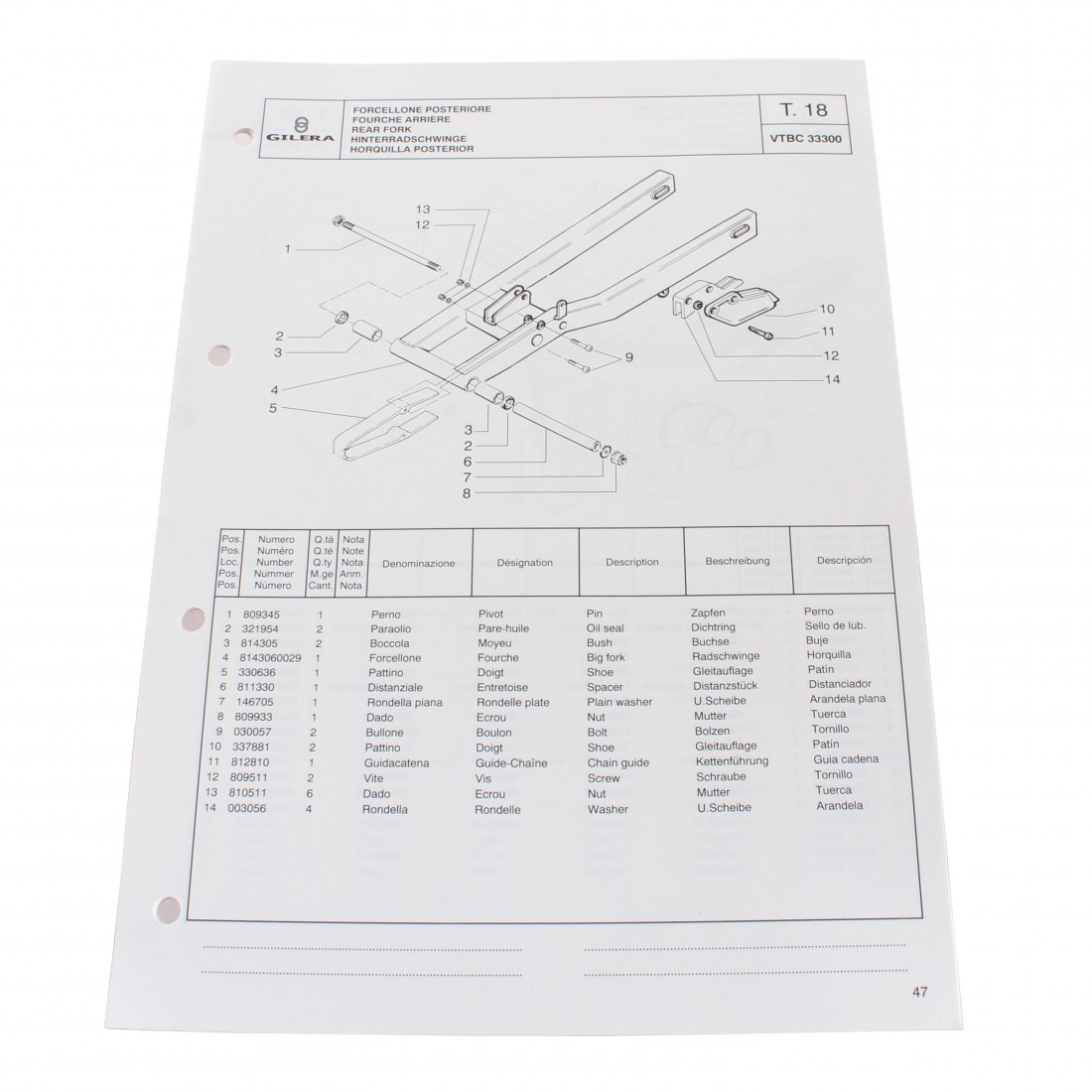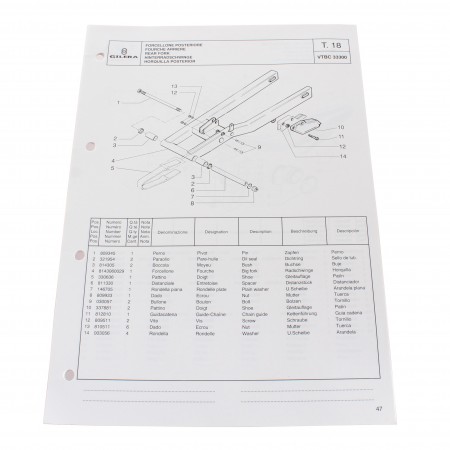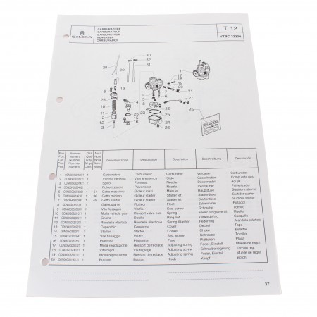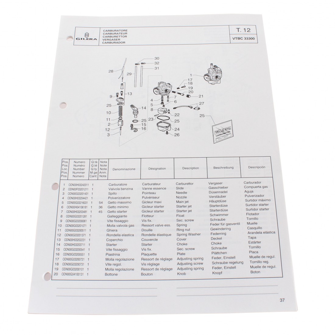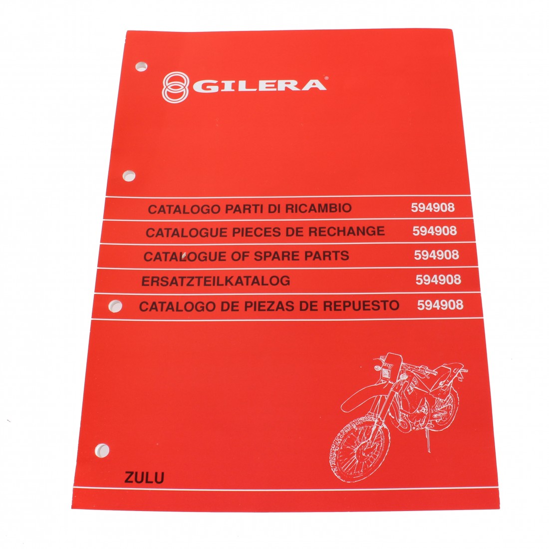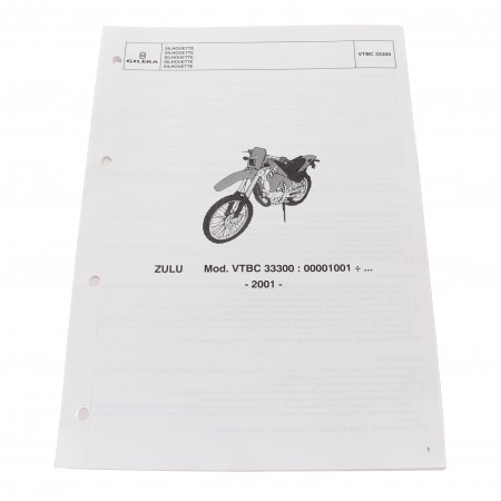 (R.13747) Vendo prontuario con esplosi parti di ricambio nuovo per Gilera Zulu 50 cc con codice 594908 originale non riproduzione in italiano - inglese - francese - tedesco - spagnolo