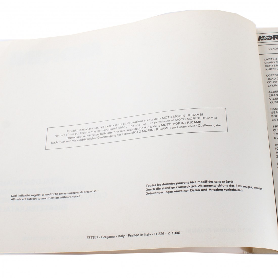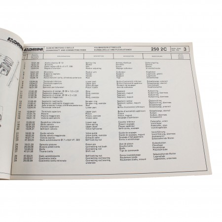 (R.13750) Vendo prontuario con esplosi parti di ricambio nuovo per Moto Morini 250 2 Cilindri , originale epoca non di attuale riproduzione in italiano - inglese - francese - tedesco