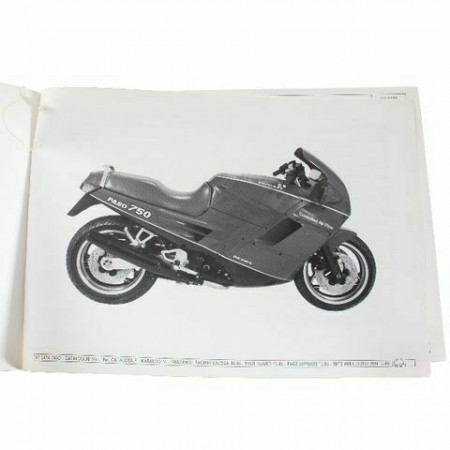 (R.12245) Vendo prontuario parti di ricambio con esplosi nuovo per Ducati 750 Paso originale epoca non riproduzione attuale pagina emessa ottobre 1986 in italiano - inglese - francese - tedesco con numero catalogo 985230034