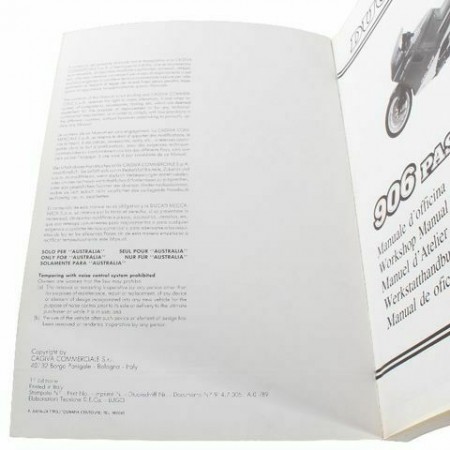 (R.12251) Vendo manuale di riparazioni nuovo per Ducati 906 Paso originale epoca prima edizione gennaio 1989 non riproduzione attuale in italiano - inglese - francese - tedesco - spagnolo