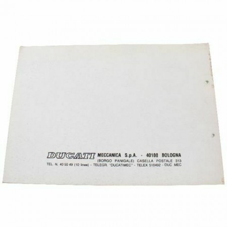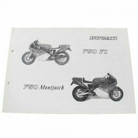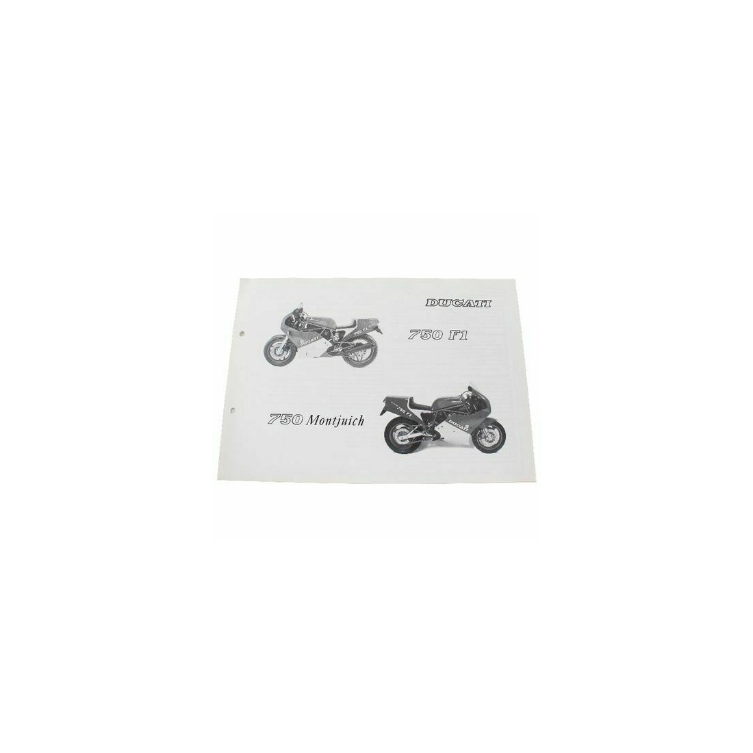 (R.12255) Vendo prontuario scansionato in file PDF a colori per parti di ricambio con esplosi per Ducati 750 F1 e 750 Montjuich originale epoca non riproduzione attuale pagina emessa febbraio 1986 in italiano - inglese - francese - tedesco con numero catalogo 985230032, disponibile solo file PDF no catalogo cartaceo , foto del catalogo originale solo a scopo illustrativo