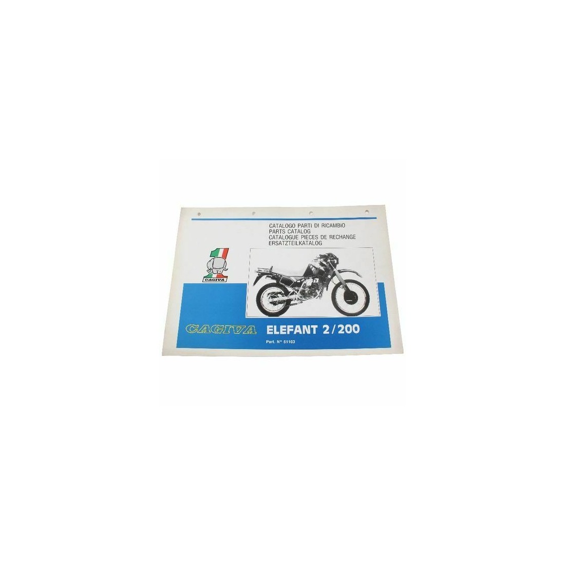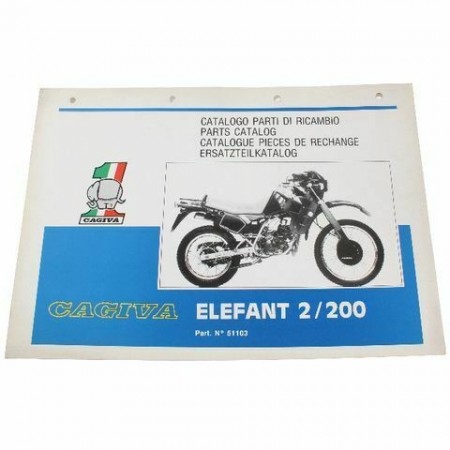 (R.12260) Vendo prontuario parti di ricambio con esplosi nuovo per Cagiva Elefant 2 200 cc originale epoca non riproduzione attuale pagina emessa Febbraio 1986 in italiano - inglese - francese - tedesco con numero catalogo 51103