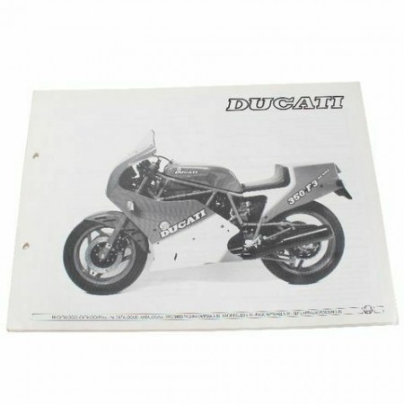 (R.12243) Vendo prontuario parti di ricambio con esplosi nuovo per Ducati 350 F3 originale epoca non riproduzione attuale pagina emessa maggio 1986 in italiano - inglese - francese - tedesco con numero catalogo 985230035