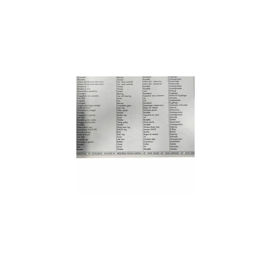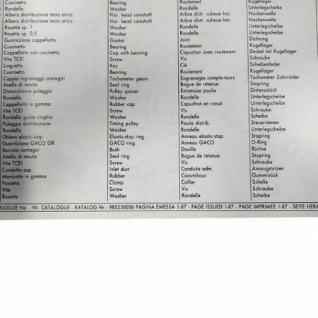 (R.12247) Vendo prontuario parti di ricambio con esplosi nuovo per Ducati 750 F1 e 750 laguna Seca originale epoca non riproduzione attuale pagina emessa gennaio 1987 in italiano - inglese - francese - tedesco con numero catalogo 985230036