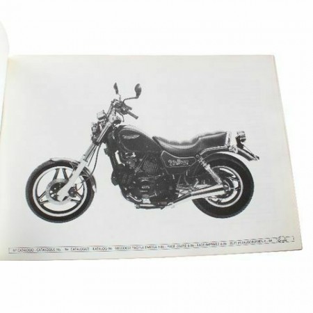 (R.12248) Vendo prontuario parti di ricambio con esplosi nuovo per Ducati Indiana 350 e 650 cc originale epoca non riproduzione attuale pagina emessa gennaio 1986 in italiano - inglese - francese - tedesco con numero catalogo 985230033