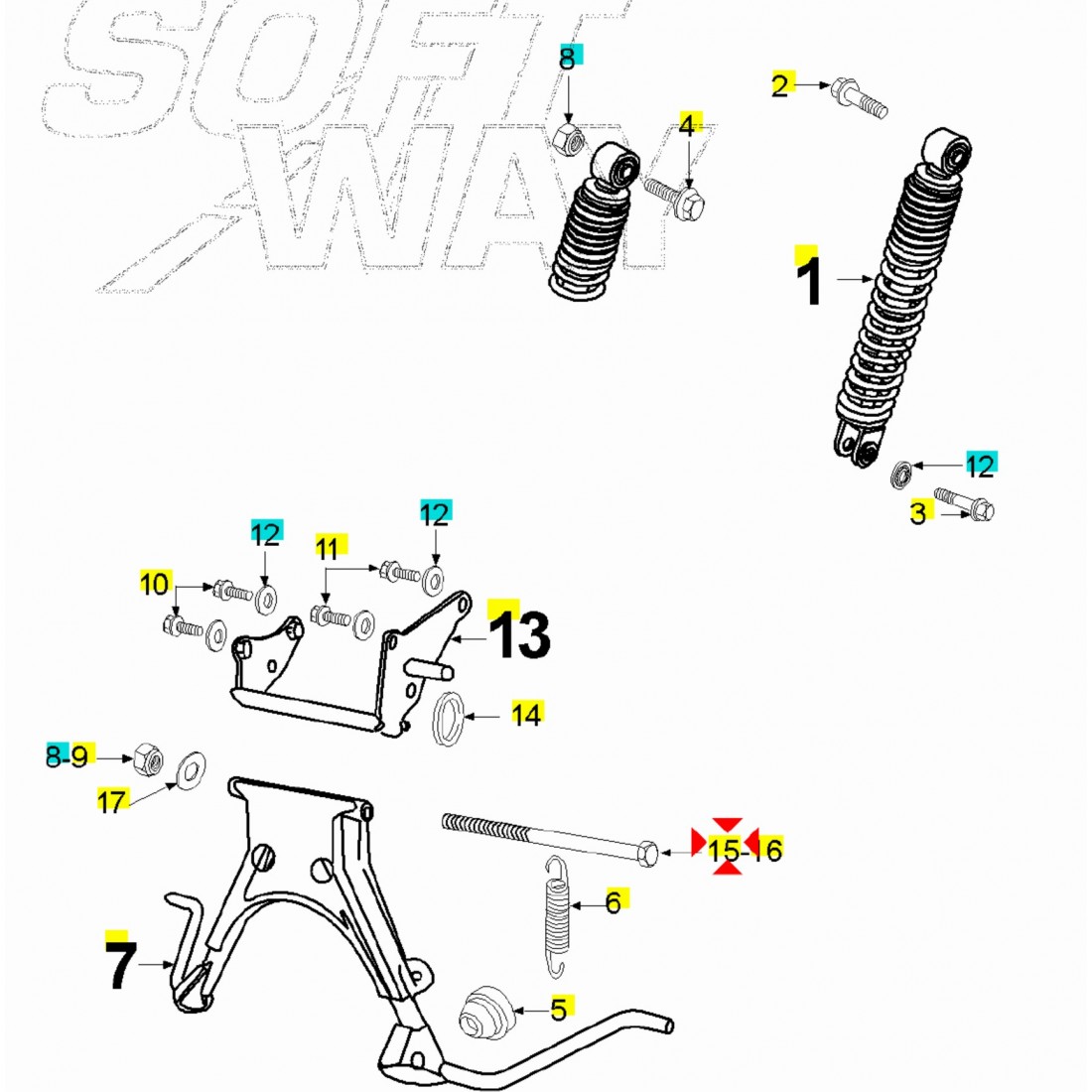 (R.17548) Vendo vite perno cavalletto centrale nuova per Peugeot Speedfight - Elyseo - Citystar - Fox - Jet - Vogue con codice 727305 e con diametro di 10 mm e lunghezza di 183 mm , per misure ed esploso vedere foto