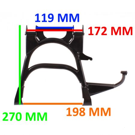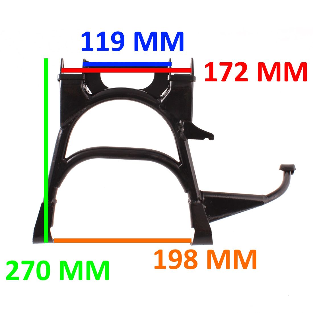 (R.18762) Vendo zampa di sostegno centrale nuova per Kymco People 50 cc - Yup 50 cc - S 50 cc marca Buzzetti con codice 8720 , con altezza 270 mm e larghezza 198 mm , con interno imbocco 119 mm e esterno imbocco 172 mm , di colore nero , per misure vedere foto
