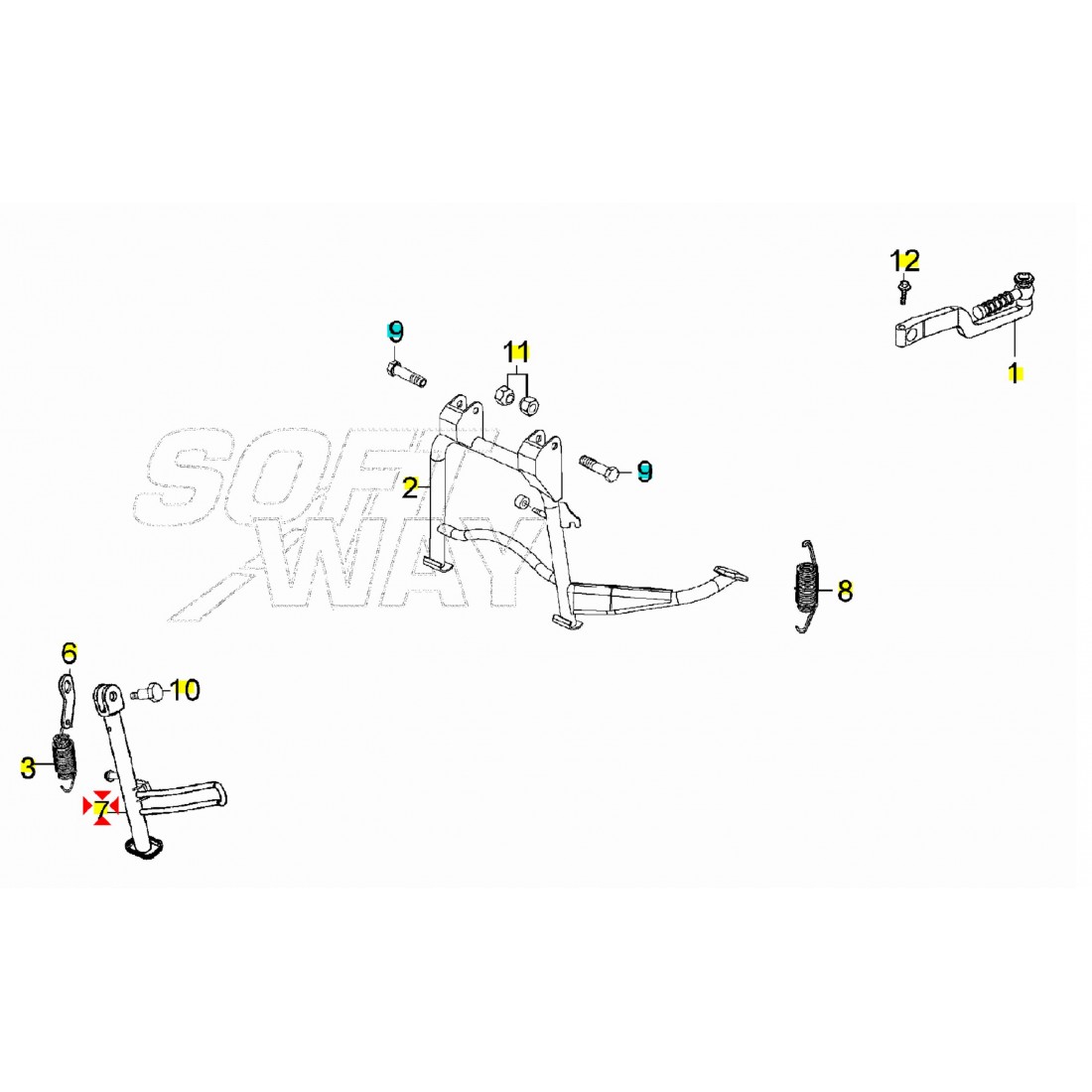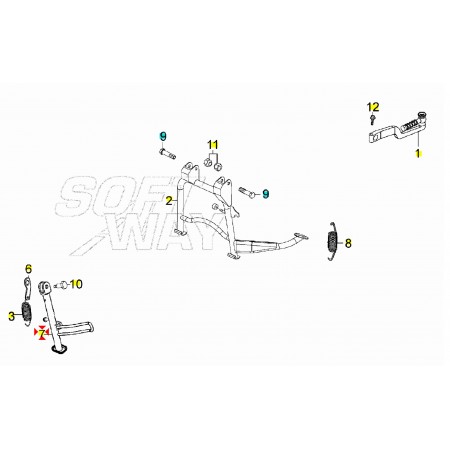 (R.21046) Vendo cavalletto laterale usato per Kymco Agility con ruota da 12 con codice Kymco 00165060 , per applicazioni e spaccato vedere foto