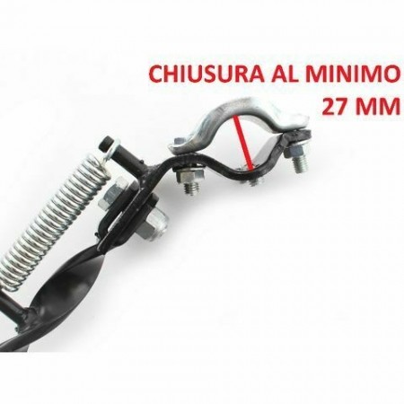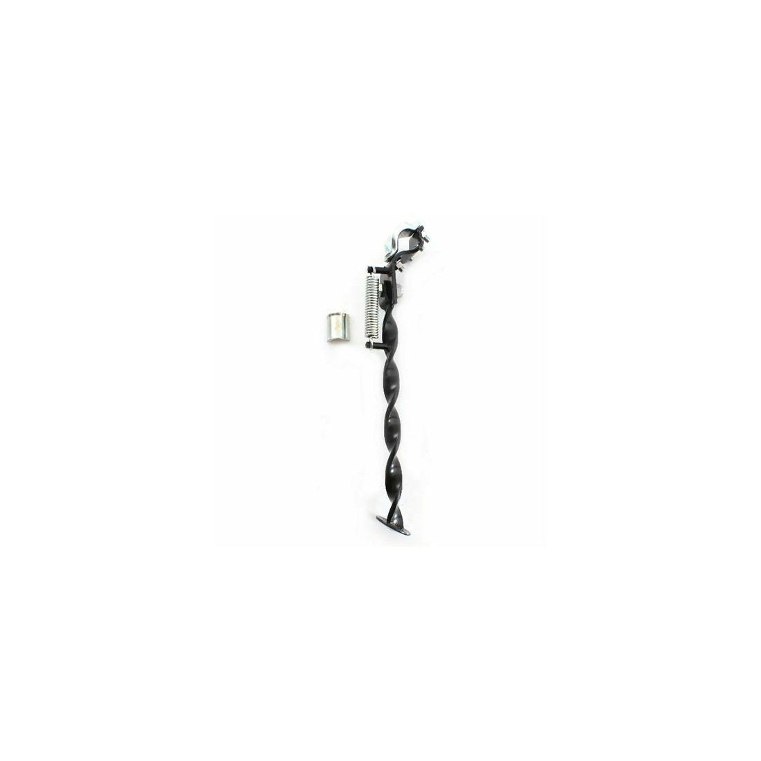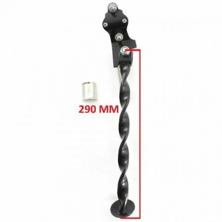 (R.689) Vendo zampa laterale attorcigliata di colore nero nuova con lunghezza mm. 290 e fissaggio con fascetta su forcelloni tipo tondo , per misure vedere foto