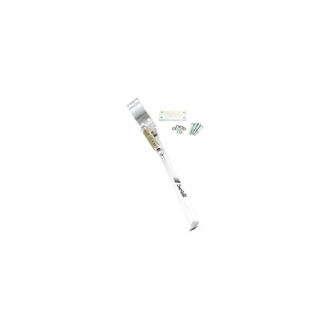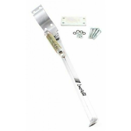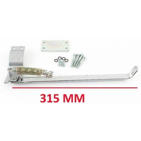 (R.4753) Vendo zampa cavalletto cromata nuova per il sostegno laterale con lunghezza 310 mm per forcelloni tipo quadro completa di ferramenta per il montaggio , per misure vedere foto