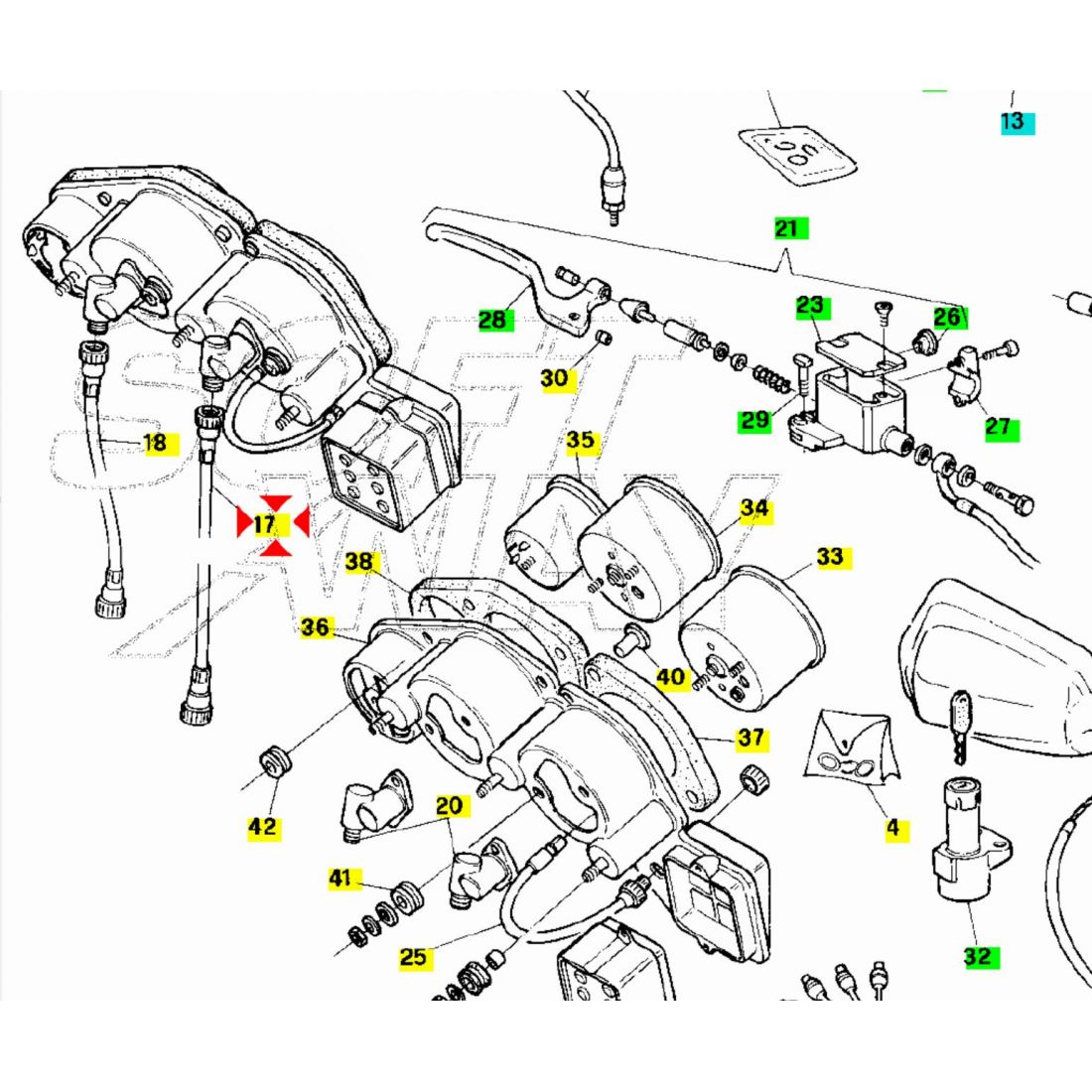 (R. 24736) Vendo trasmissione tachimetro contakm nuovo per Aprilia Pegaso 125 e 600 con codice Aprilia AP8114186 , per applicazioni e spaccato vedere foto
