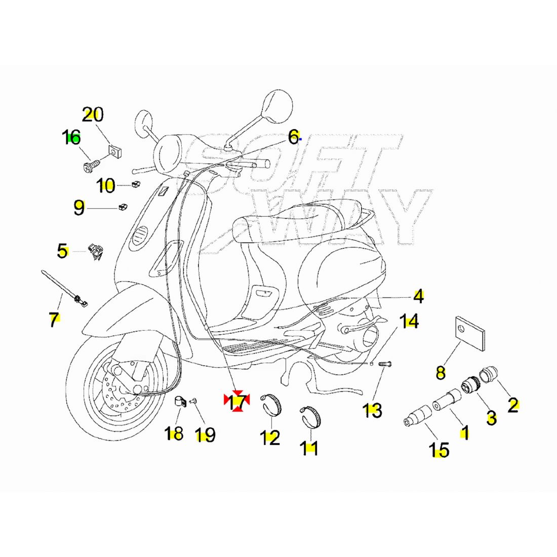 (R. 24801) Vendo trasmissione cavo freno posteriore nuova per Vespa ET2 - LX - S -  Sfera RST 50 , Vespa ET4 125 simile a codice Piaggio 655912 ex 562424 , per applicazioni e spaccato vedere foto