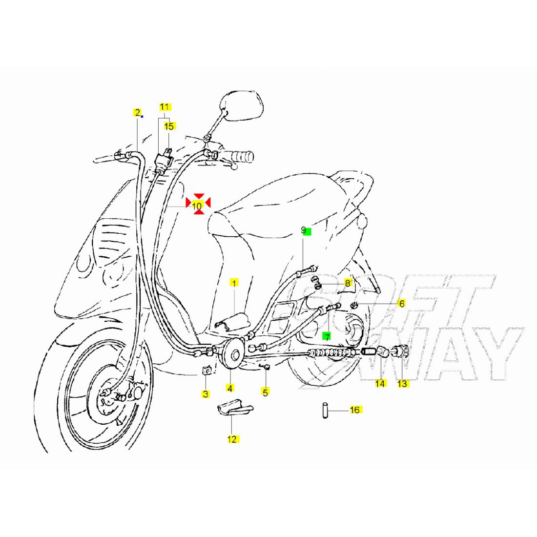 (R.25512) Vendo trasmissione cavo del freno posteriore nuovo con codice Piaggio 560711 per Piaggio NRG MC3 50 - NRG Extreme 50 - Gilera Typhoon 125 - Typhoon X XR 125 , per applicazioni e spaccato vedere foto
