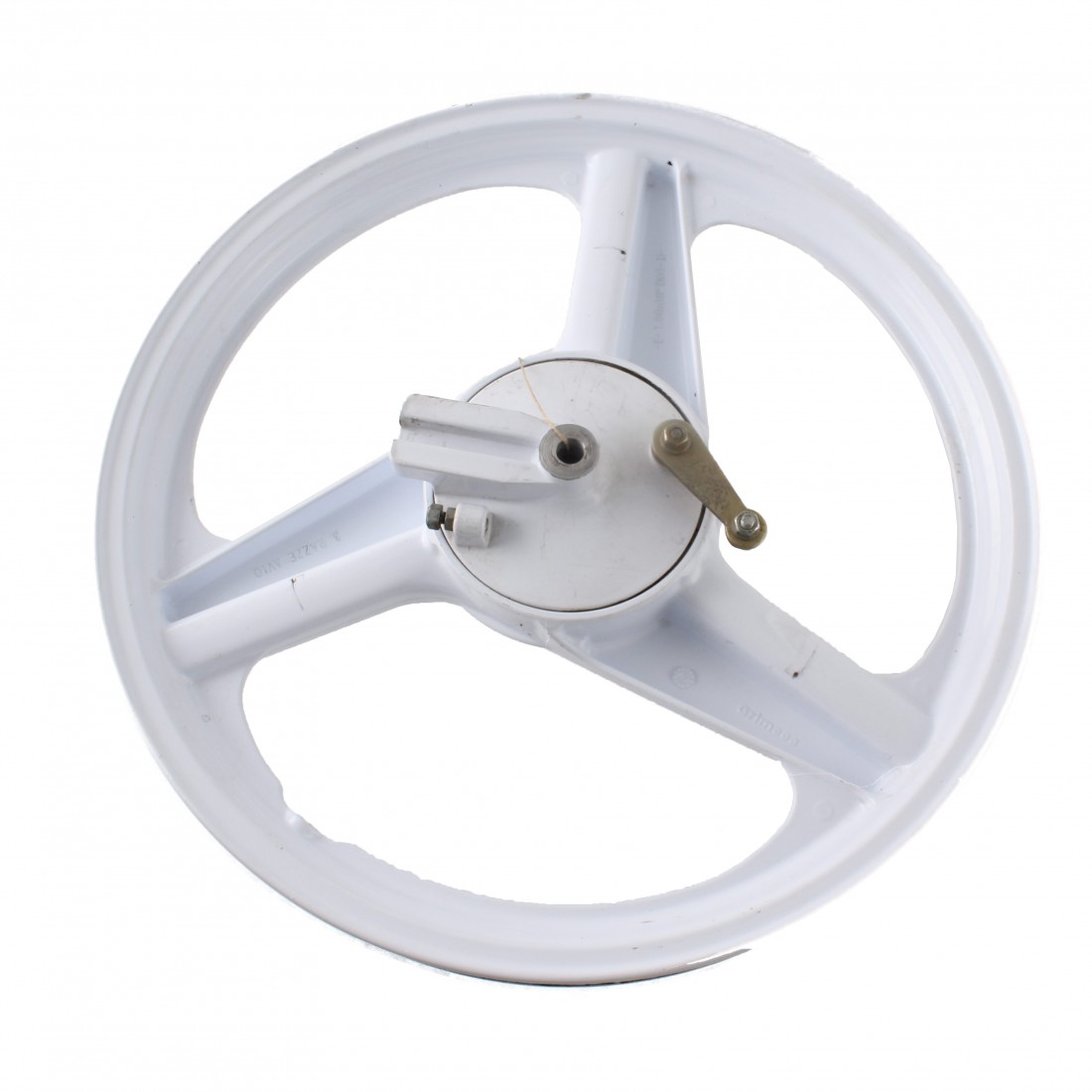 (R.16745) Vendo ruota in lega anteriore usata 1.60 x 16 pollici per tuboni tipo Motron GL4 dal 1991 al 1993 circa marchiati Grimeca di colore bianco