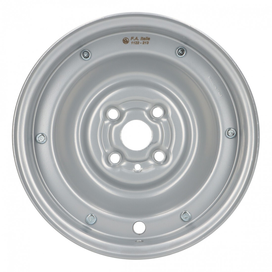 (R.20837) Vendo cerchio ruota pieno da 9 pllici nuovo con quattro fori centrali per il fissaggio per Piaggio Vespa R - Vespa Special ruota da 9 - Vespa Revival , per applicazioni e spaccato vedere foto