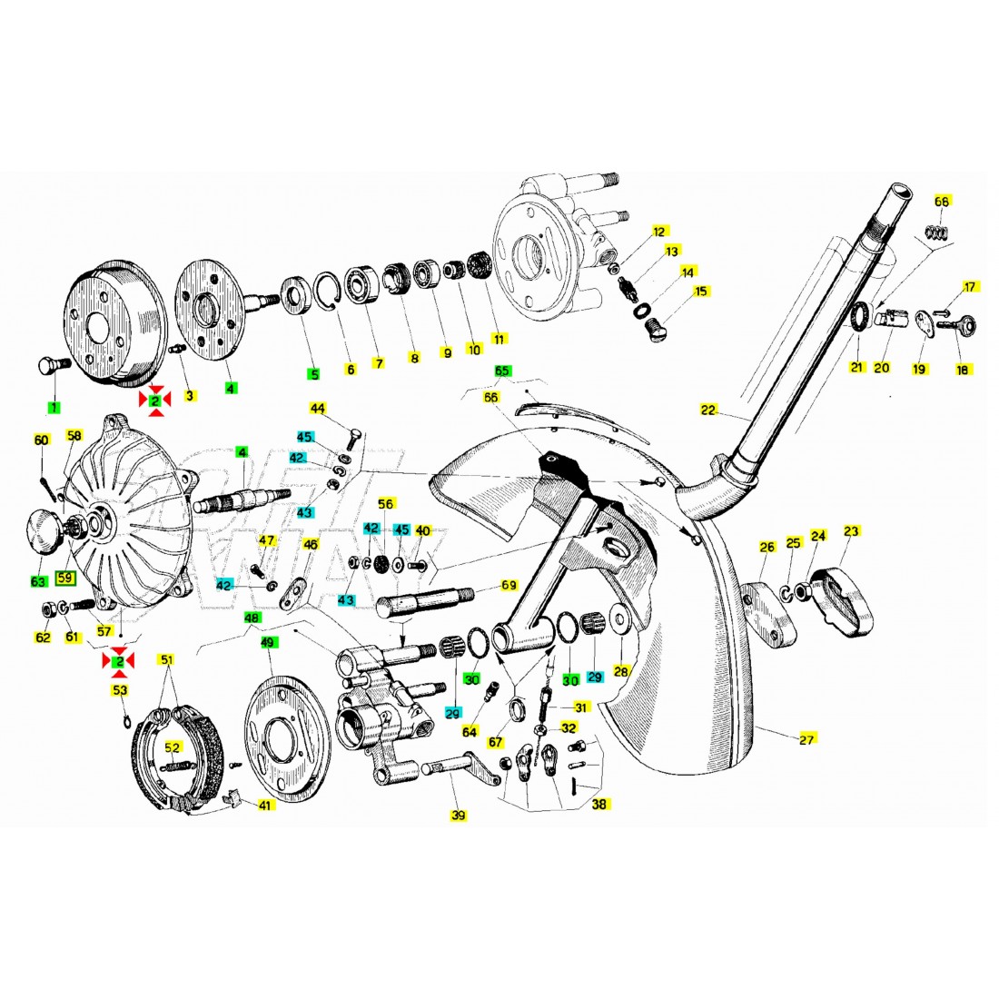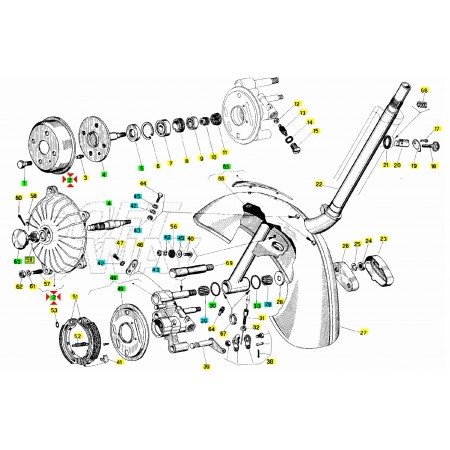 (R.21553) Vendo tamburo freno anteriore usato pari al nuovo per ruote da dieci pollici marchiato Piaggio 130138 per Piaggio Vespa Special 50 cc - Revival 50 cc - Primavera 125 cc - ET3 125 cc , con codice Piaggio 158252 , per applicazioni e spaccato vedere foto