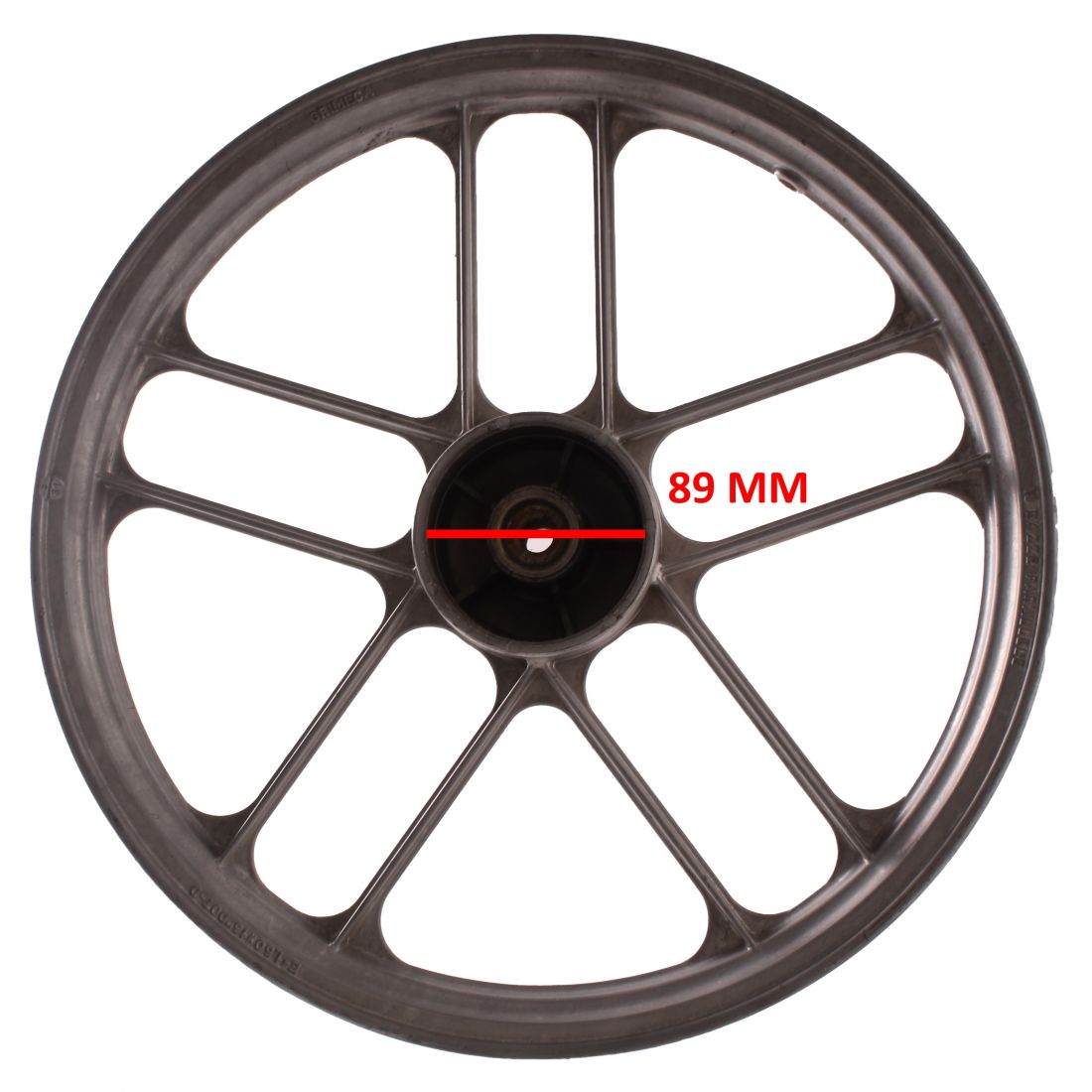 (R.21745) Vendo cerchio ruota usato in lega da 10 razze parallele da 1.60 x 16 pollici senza piatto portaceppi , diametro tamburo 89 mm e larghezza cerchio 58,5 mm , per misure vedere foto