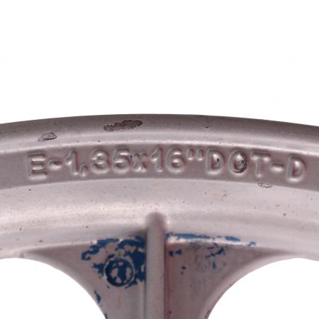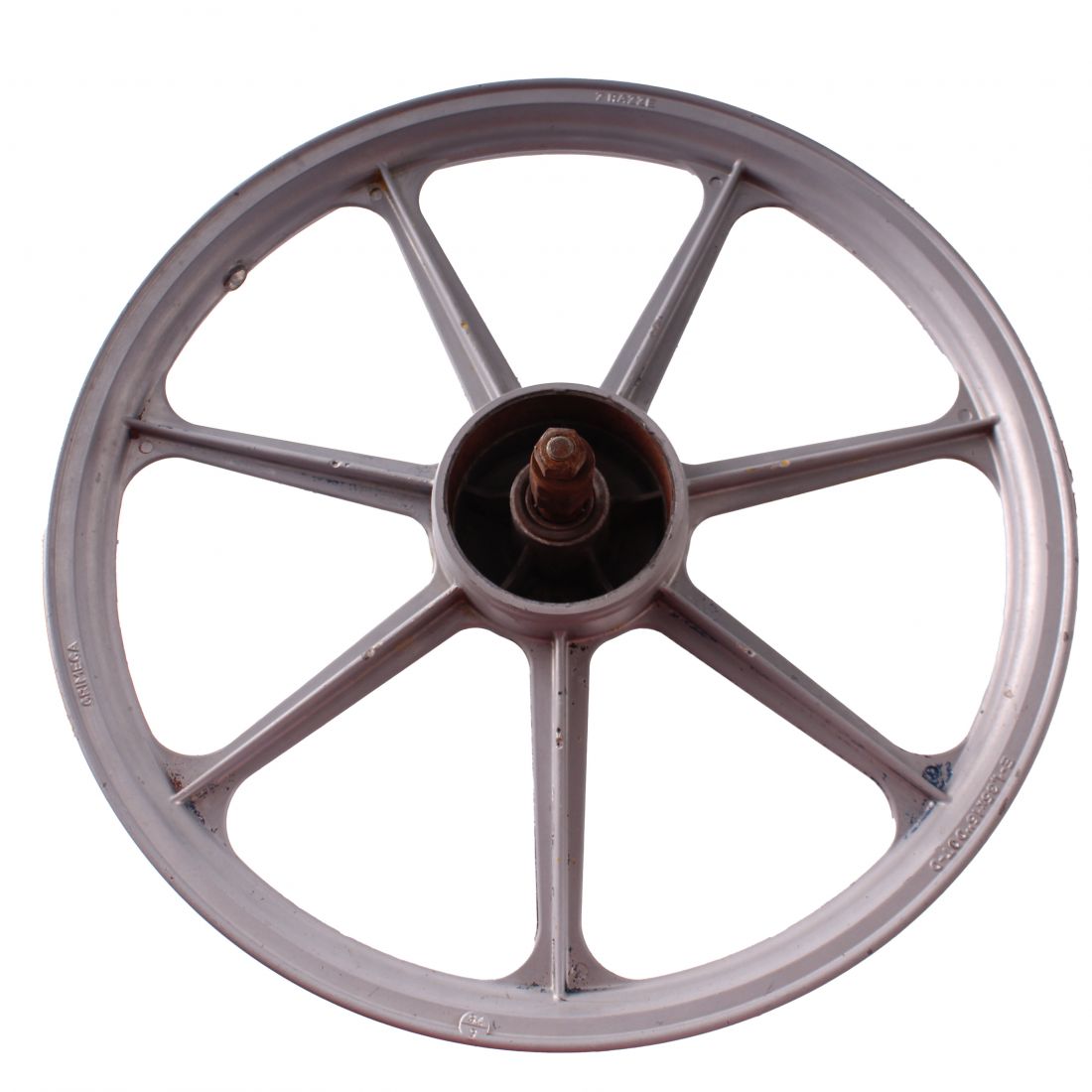 (R.23889) Vendo cerchio usato senza piatto porta ceppi come si vede in foto per ciclomotori vari tipo Garelli a 7 razze marchiato E - 1.35 x 16 " DOT - D di colore grigio marca Grimeca
