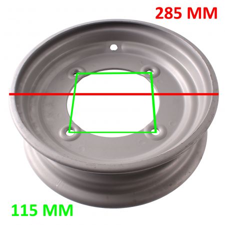 (R. 24905) Vendo cerchio ruota nuovo in ferro verniciato grigio da 10 pollici tipo agricolo , con interasse fori 115 mm e diametro esterno 285 mm , larghezza cerchio 100 mm , di cui non conosciamo le applicazioni , per misure vedere foto