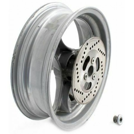 (R.10034) Vendo cerchio anteriore in lega usato per scooter Suzuki Katana AY 50 R in lega a 3 razze marca Grimeca con misure 12 x 3.50 e completo di disco freno